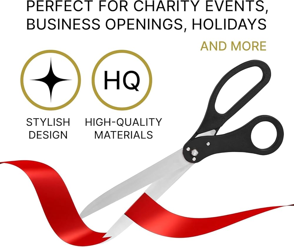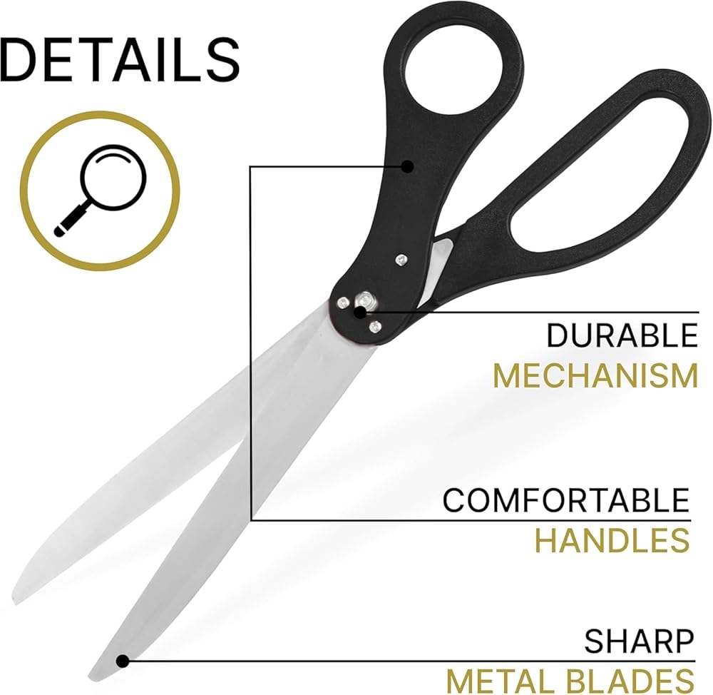 Cutting with big ribbon cutting scissors is an important part of your event. Our large ribbon cutting scissors will ensure the success of your event and make it bright and unforgettable. And the black color of heavy duty scissors will add style to your celebration