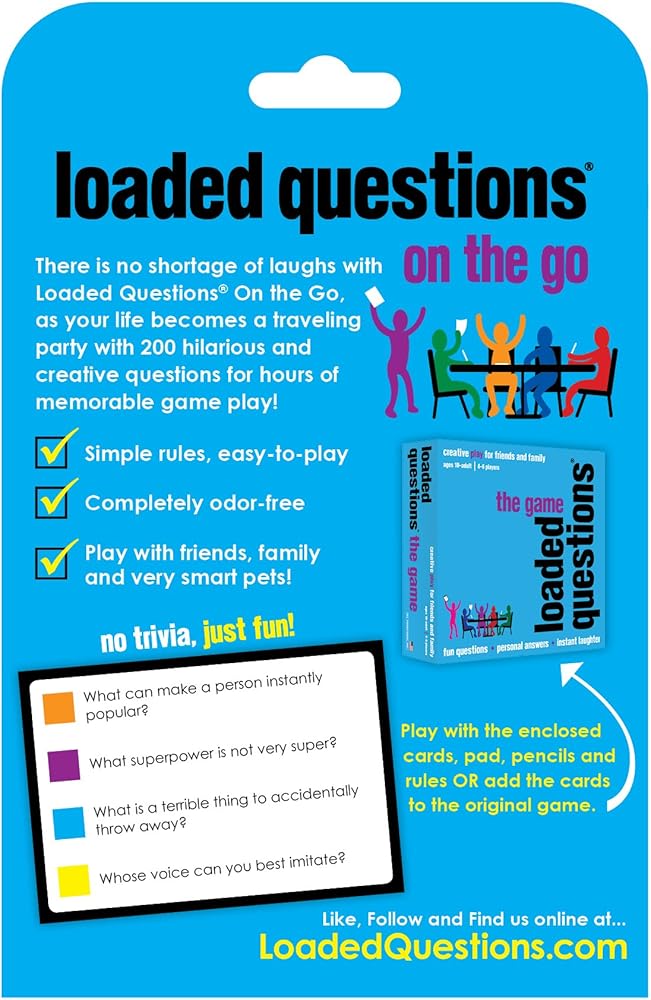 There is no shortage of laughs with Loaded Questions On The Go, as your life becomes a traveling party with 200 hilarious, creative questions for hours of memorable game play.