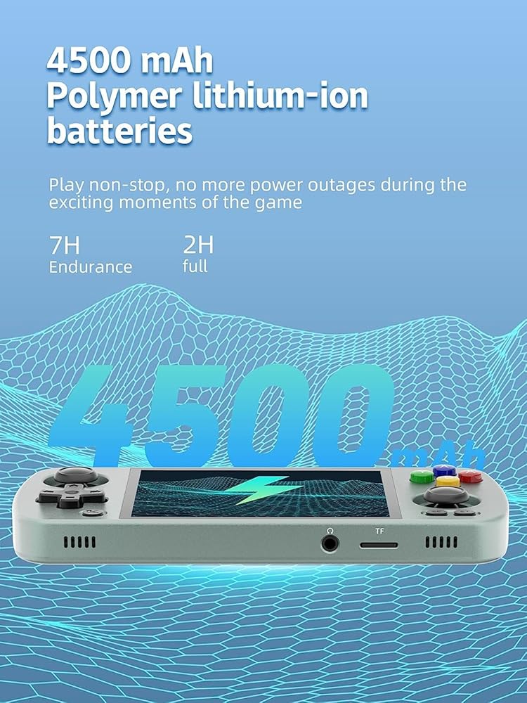 RG405M Specifications: -Color: Black / Gray -System : Android 12 -Screen: The 4-inch IPS touch screen,resolution 640*480 -CPU: Unisoc Tiger T618 64-bit cota-core 2*[email protected]+6*[email protected] -GPU: Mali G52@850Mhz -RAM: 4GB LPDDR4X@1866Mhz -Memory: 128GB eMMC -WIFI / Bluetooth :2.4/5G WIFI 802.11a/b/g/n/ac,Bluetooth 5.0 -Game : Support: Android games (genshin impact, Honor of Kings, etc.), PS2, WII, NGC, 3DS, PSP, DC, SS, PS1, NDS, N64, CPS1, CPS2, CPS3, FBA, NEOGEO, GBA, GBC, GB, SFC,FC, MD, SMS, GG, MSX, PCE, WSC, N-Gage and more than 20 formats of games. Support users to download games in relevant formats -Software: Built-in game front-end,Supports multimedia network play -Battery: Li-polymer battery 4500 mAh, charging 2hours, battery life 7 hours -Speaker: Hi-fi speaker -TF Card: Support TF card expansion, up to 2TB -Other Functions: Built-in Hall joystick, six-axis gyroscope sensor, support OTA wireless upgrade, online matchmaking, streaming, wireless projection screen, vibration motor, support 3.5mm stereo earphones, energy saving setting, display brightness and other functional properties settings -Language: Multilanguage -Console Size/Weight: Length 11.3cm, Width 7.6cm, Height 1.59cm, Weight 0.26kg Packing List : 1 x RG405M Game Console 1 x 128G SD Card 1 x USB Cable 1 x Screen protector