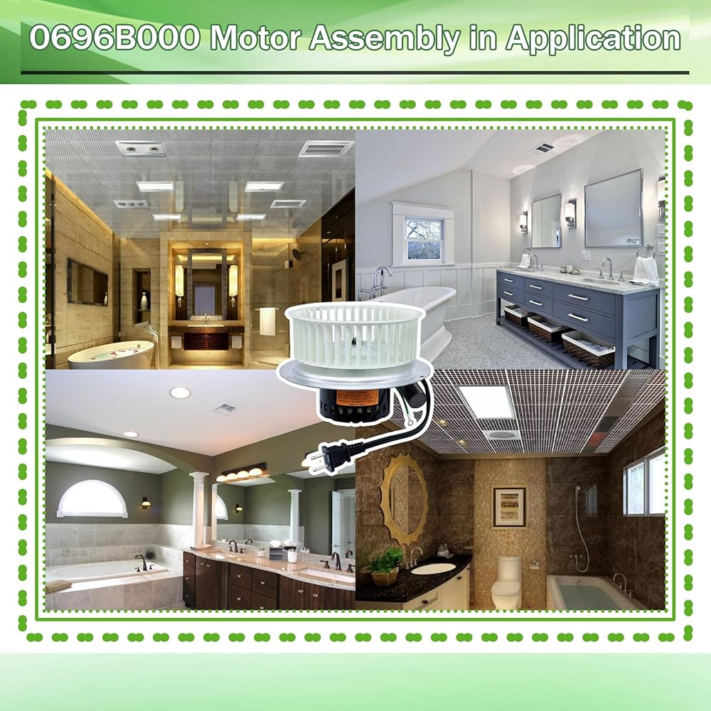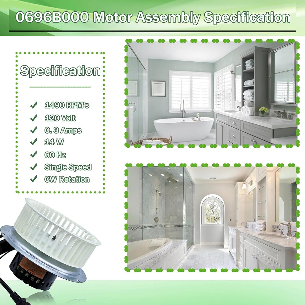【استبدال متوافق】مجموعة محرك 0696B000 مطورة من Bxmgr متوافقة مع مروحة الحمام Nutone، الطرز المتوافقة هي QT100FL، QT100L، QT100LH، QT100LHM، QT100LM، QT110NB، QT110N، QT110، QT110H، QT9093، QT9093AB، QT9093BR، QT 9093CH، QT9093WH وأكثر من ذلك. يمكن استبدال نماذج المحركات التالية: 8253210230، 8253210930، AL41285A، JA2C119، JA2C119H. إذا لم تكن متأكدًا مما إذا كان مناسبًا، فيرجى الاتصال بنا