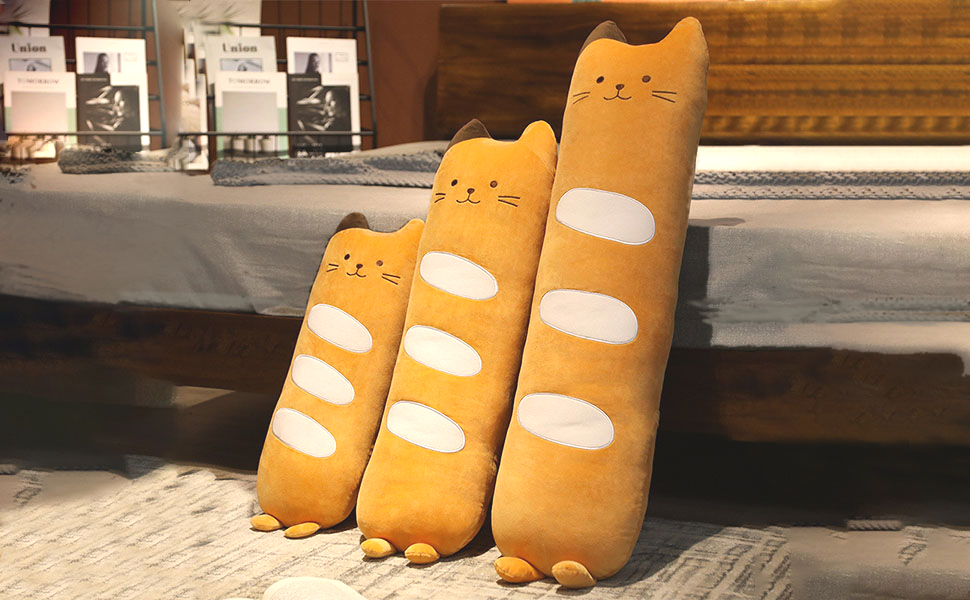 ★Great Gift: A bread plush pillow that can be used as a hugging pillow, nap pillow, back pillow and lumbar pillow, this cute long cat pillow has a lifelike appearance and cute expression, the most special part is the unique design of bread and cat combination, funny food plush is a sweet gift for kid, friend and family.