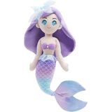 1. VIVID FACIAL FEATURES: This adorable plush mermaid girl with 2 twinkle eyes, and blushes on her face, looks like a princess of the underwater world. Wearing a slight but sweet smile, the little girl looks mysterious but adorable. This naive mermaid has no legs but a colorful and large tail instead. The glitter heart embroidered on her body makes her more attractive.