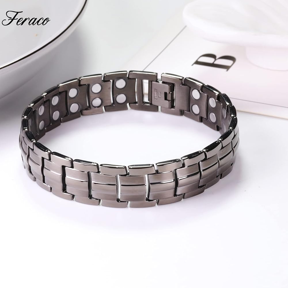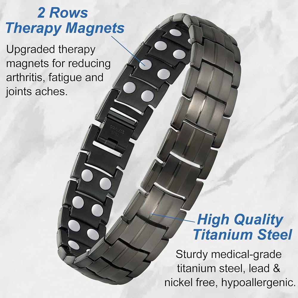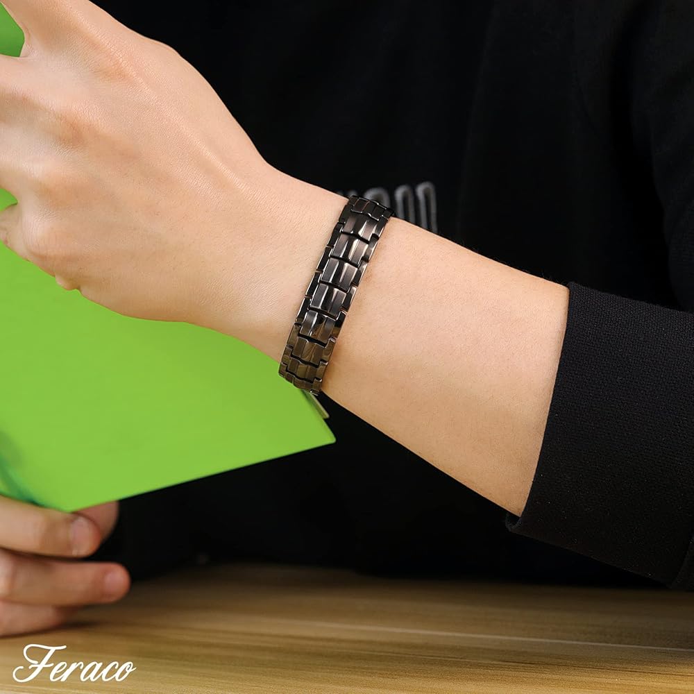 Titanium Steel Bracelet: The bracelet for men is made of titanium steel, free of lead and nickel, hypoallergenic, light weight, shiny, waterproof, corrosion resistant and durable. It can be worn comfortably for a long time.