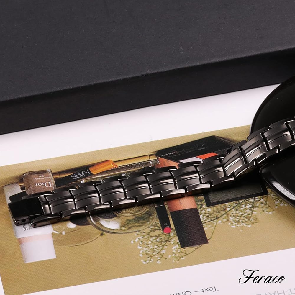 Classic Design: The titanium steel bracelet has a classic plated black finish with violet line. Its elegant design can be matched with variety of dressing styles for office, business occasions, outdoor sports and other daily scenes. It is an essential accessory that fits most men and definitely a finishing touch for your outfit.