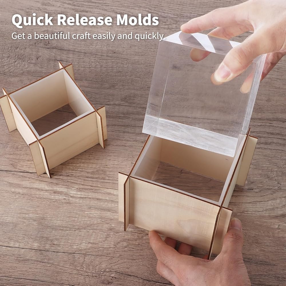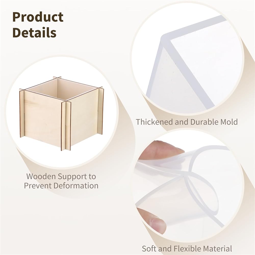 【مقاسان للاستخدامات المختلفة】تحتوي العبوة على قالبين من السيليكون بأحجام مختلفة لتلبية استخداماتك المختلفة. يبلغ مقاس القالب الصغير حوالي 3 × 3 × 3 انش، والقالب الكبير حوالي 4 × 4 × 4 انش. كما نقدم 8 دعامات خشبية لتثبيت هذه القوالب لمنع التشوه أثناء عملية العمل.