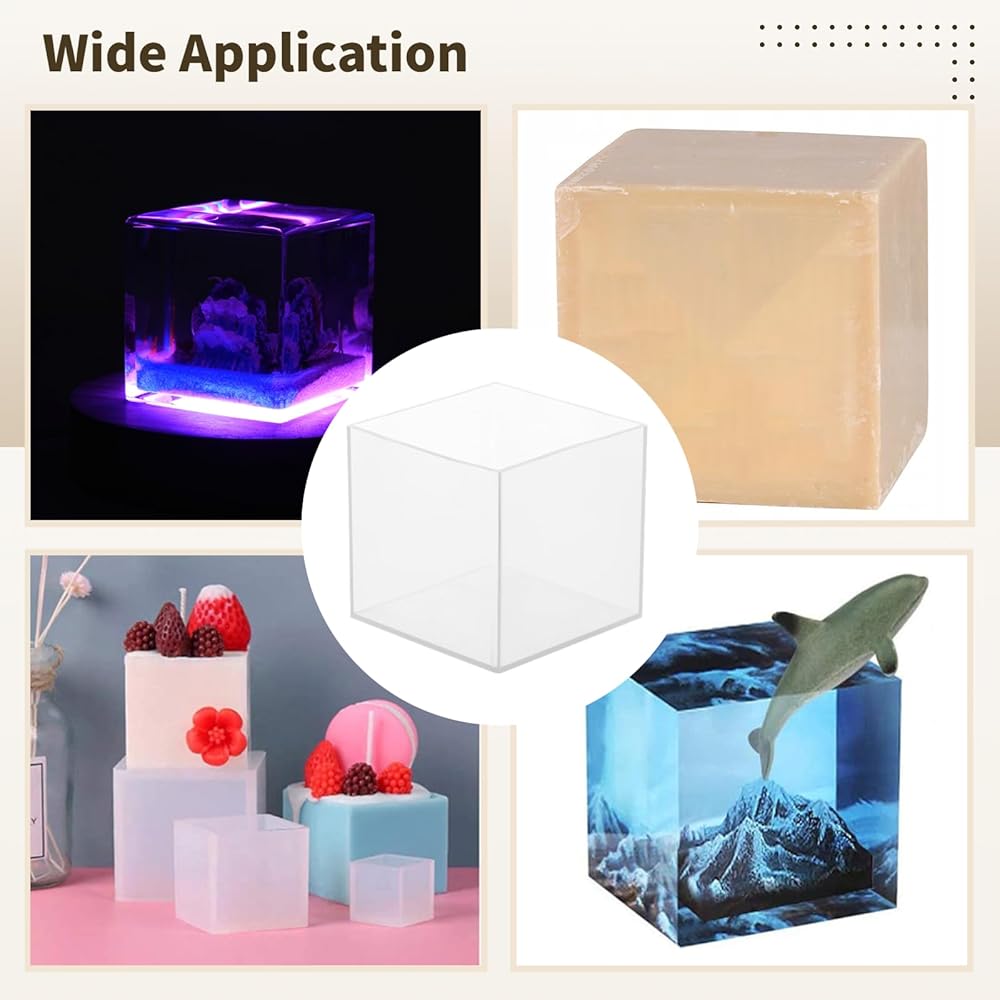 مجموعة قوالب راتنج مربعة من قطعتين، قوالب صب سيليكون 3/4 انش، قالب مكعب شفاف قابل لاعادة الاستخدام، قوالب سيليكون سريعة الفك لصنع الصابون والشموع والراتنج