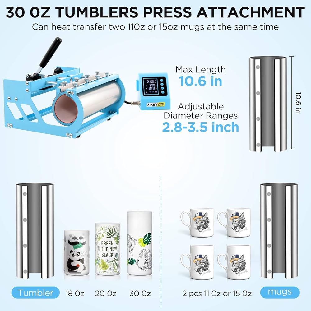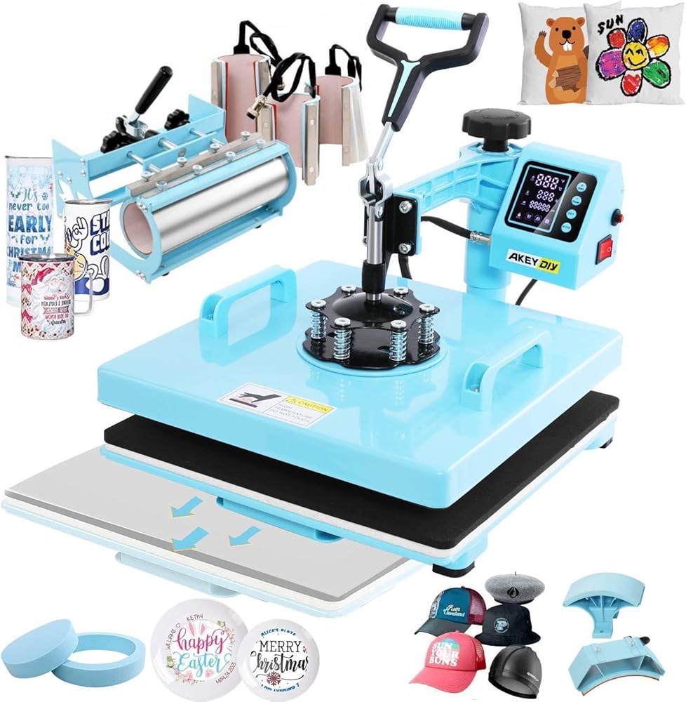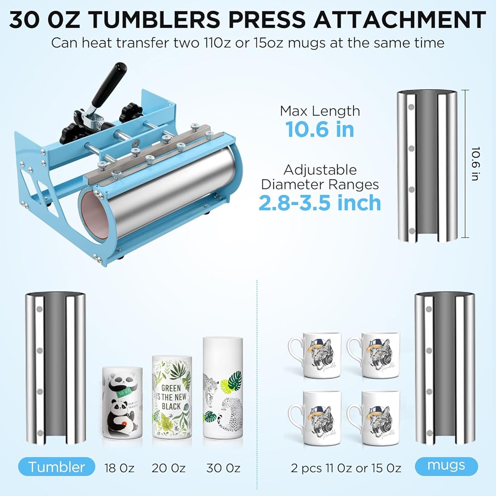WHUBEFY Heat Press,15x15 Shirt Press Machine 8 in 1 with 30Oz Tumbler Attachment Sublimation Machine Digital Slide Out Sublimation Heat Transfer Machine, Heat Press for T-Shirts Mugs Caps Plates,1400W