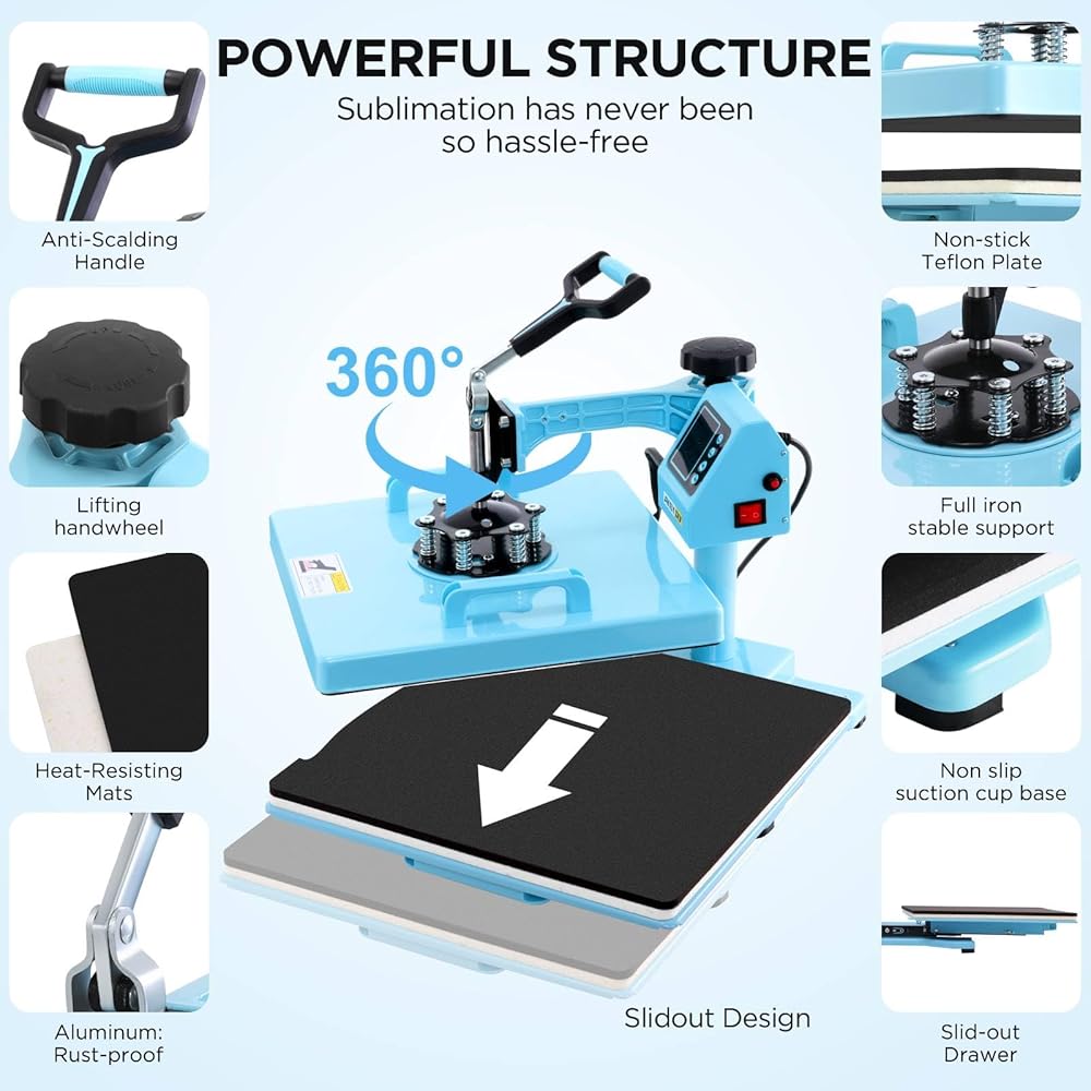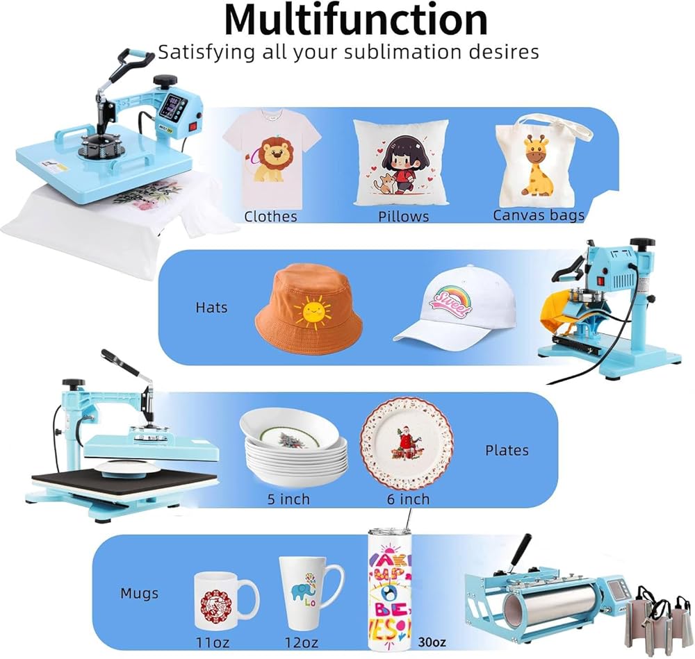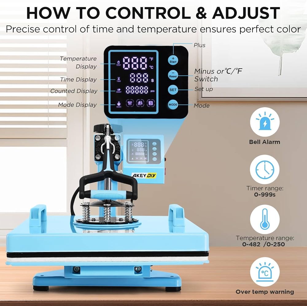 👗 Wide Range of Uses -- With a 12"x10" heat platen, the heat press machine for t shirts provides a large surface to transfer onto flat surfaced items. The tshirt press machine can be used for T-shirts, mouse pads, jigsaw puzzles, lettering, and other flat items. Suitable for ceramics, glasses, and textiles such as cotton, flax, chemical fiber, nylon, etc.Adaptable to your various individual needs.
