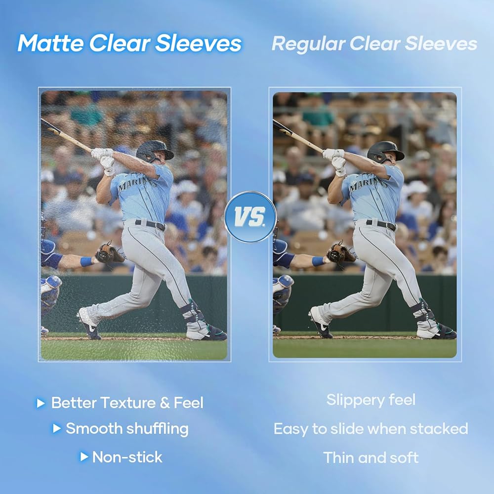 【Safety and Clarity】The baseball card sleeves are crafted from archival-safe, acid-free, non-toxic, transparent materials to provide clear detail display and dependable card protection