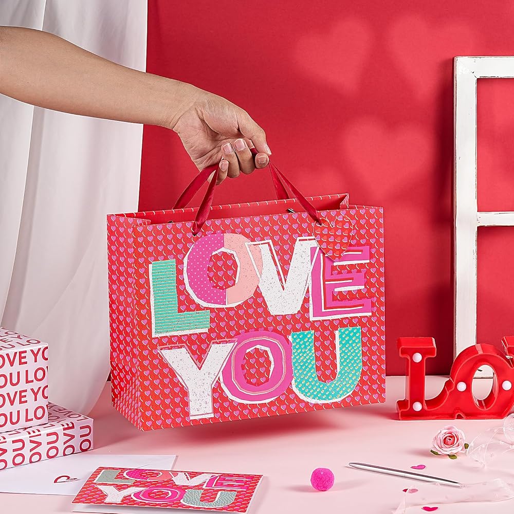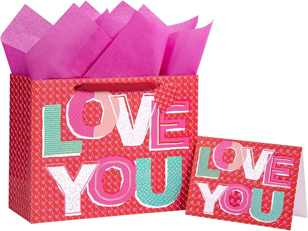 Package: This five-count set of assorted gift bag contains 1 large bag, 2 tissue paper, 1 gift tag, 1 greeting card and 1 envelope, great for all kinds of valentine's day needs