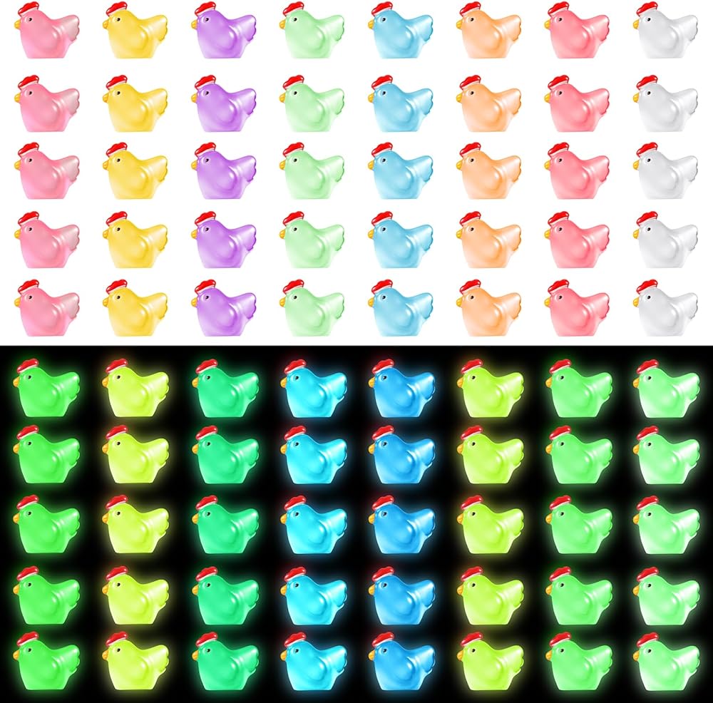 【Sufficient Quantity】 -You will receive 80 pieces luminous mini resin chicken in 8 colors, including green, rose red, blue, purple, pink, white, orange and yellow, 10 pieces for each color. Abundant quantity to meet your daily decoration and DIY needs.