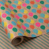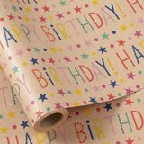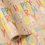 REVERSIBLE: Colorful "HAPPY birthday" and stars printed on one yellow side, colored ribbons printed on the red side. Two different designs make unique and varied gift presentations easy