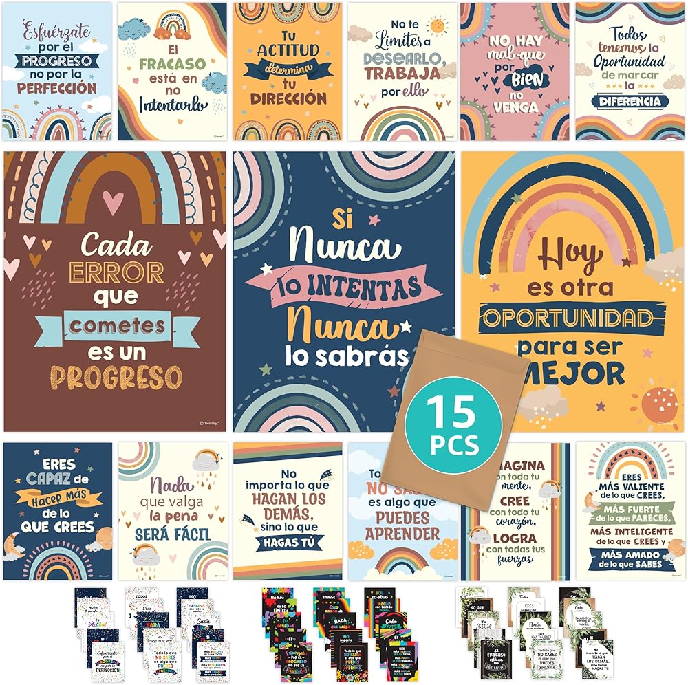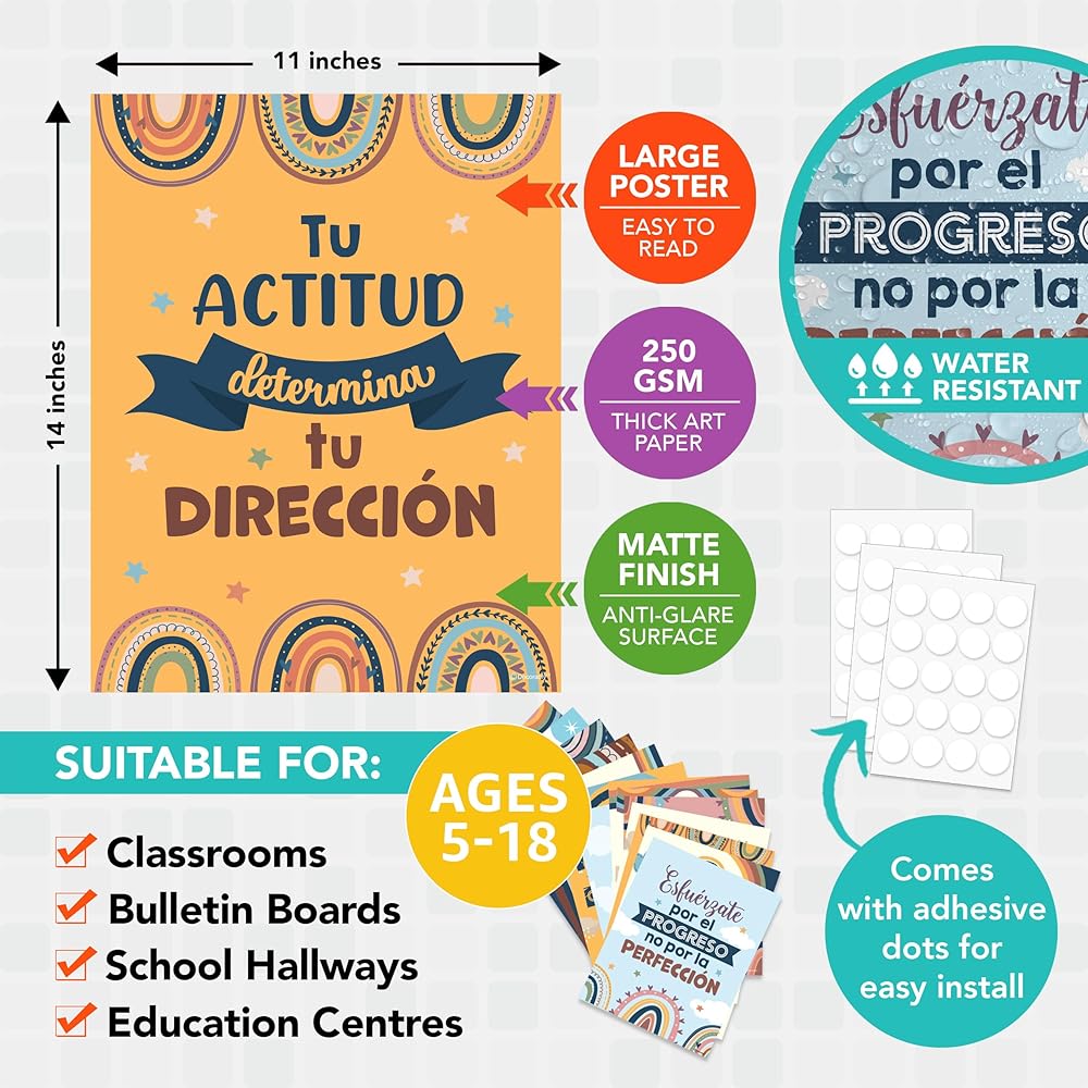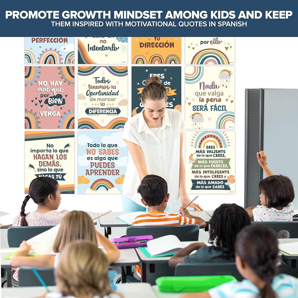 PROMOTE GROWTH MINDSET - Instill growth mindset among kids with spanish motivational posters for classroom. Spanish school posters & modern farmhouse classroom decor high school with carefully chosen quotes in beautiful designs to keep kids inspired.