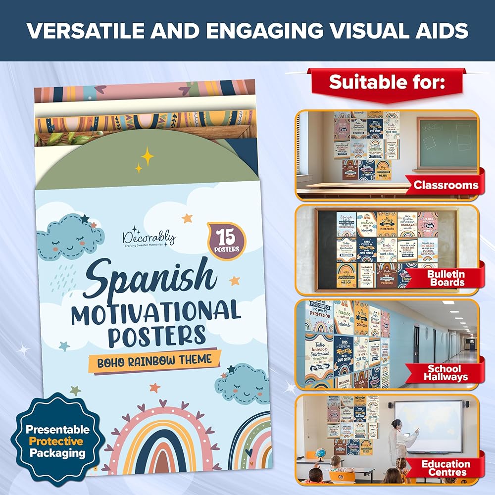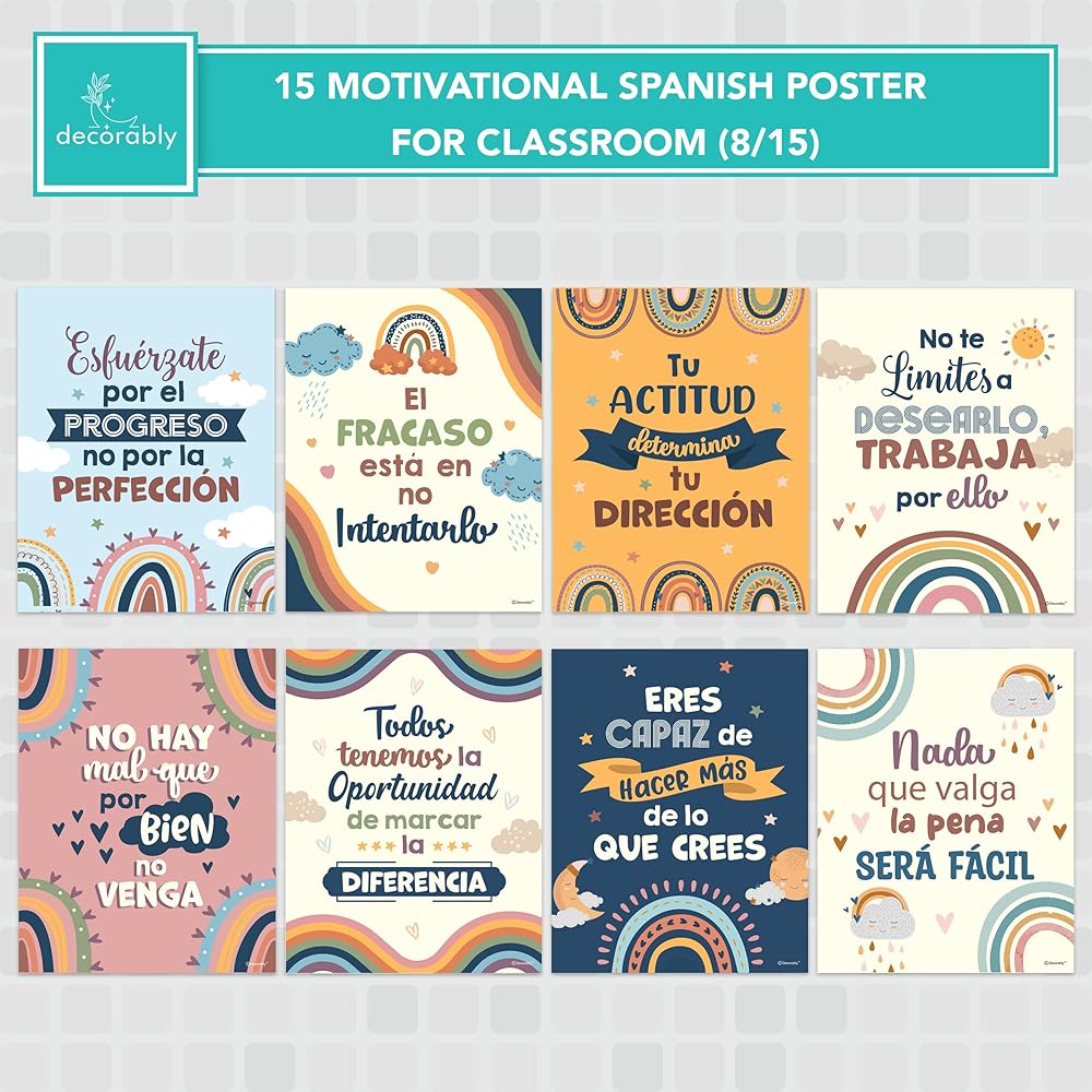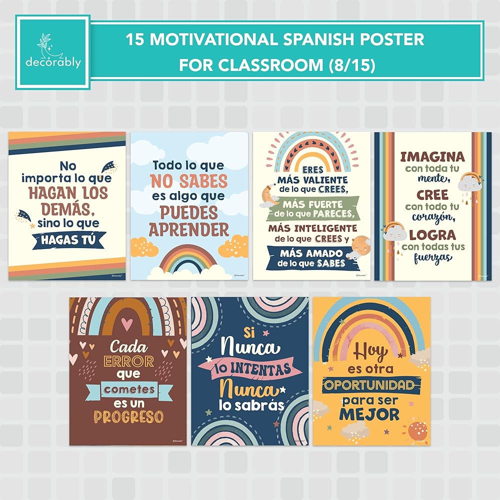 SPANISH INSPIRATIONAL POSTERS FOR CLASSROOM - 15 spanish decorations for classroom that can help boost kids' morale by providing uplifting messages. The inspiring messages on these spanish class posters high school can motivate kids.