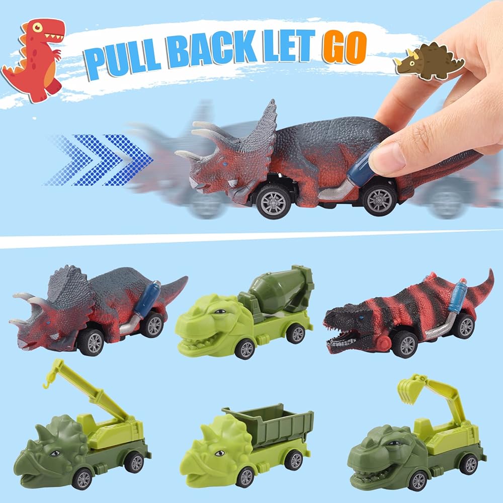 Pull Back Dino Vehicle Cars: 6 friction powered cars no batteries needed, just push back and it will slide for a long distance, it is specially designed for kids aged 4 5 6 7 8 years old and can be easily operated.