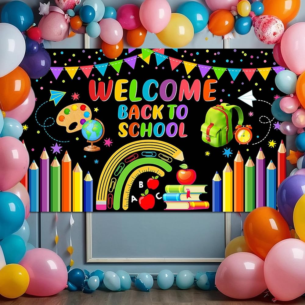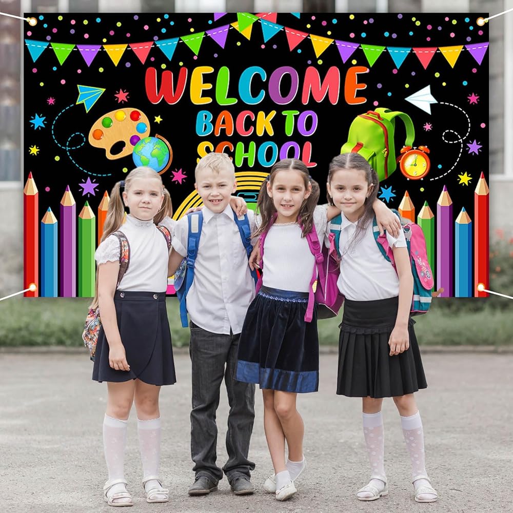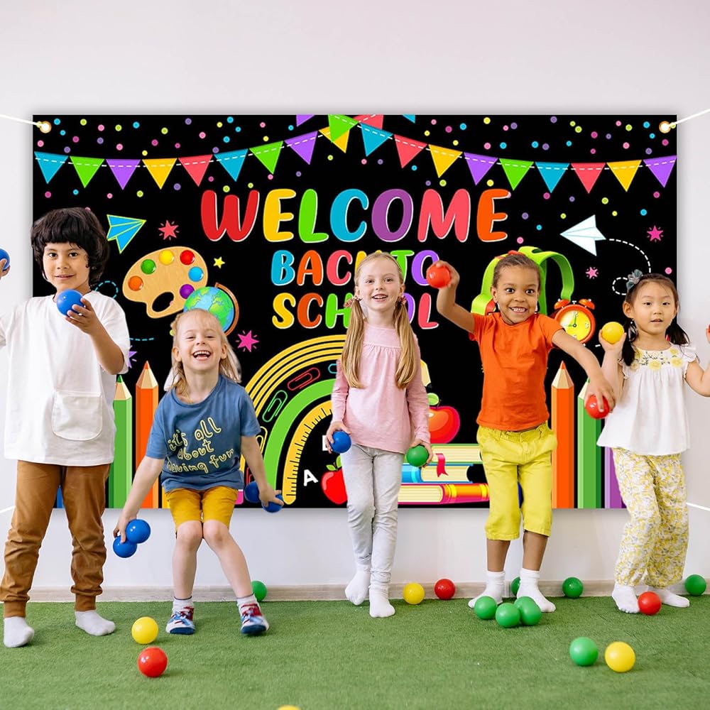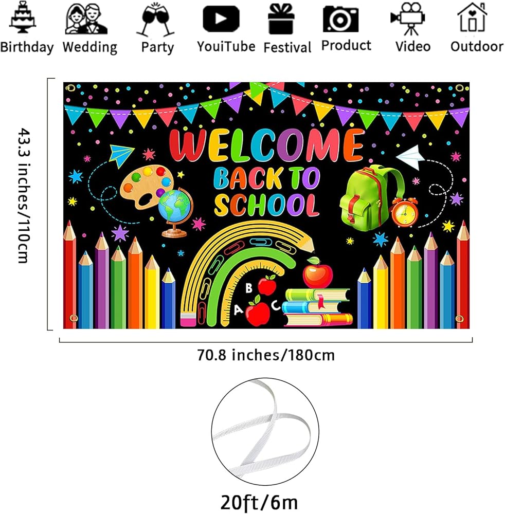Avezano Welcome Back to School Banner, Back to School Backdrop for First Day of School Decorations, Welcome Kids Students Back to School Party Decorations for School Classroom 70.8 x 43.3 Inch