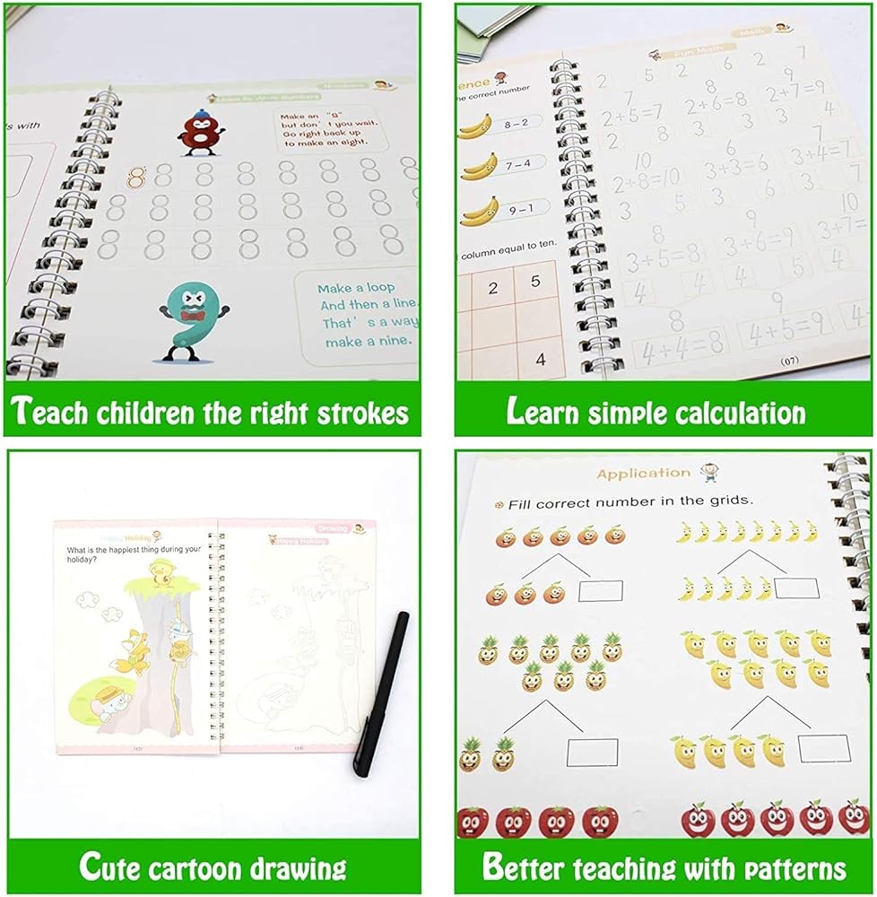 Magic Practice Copybook for Kids, Number Tracing Book for Preschoolers, Magic Calligraphy Copybook Set Practical Reusable Writing Tool for Kid Calligraphic Letter Writing Drawing Mathematics