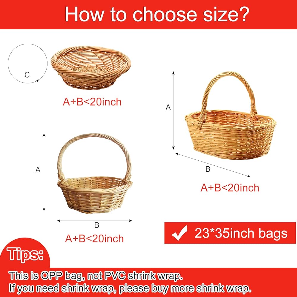 One size: this Valentine clear basket bags are approx. 23 x 35 inches, large enough to wrap your large gifts and baskets, applicable to hold your fruit baskets, breakfast packages and birthday gifts