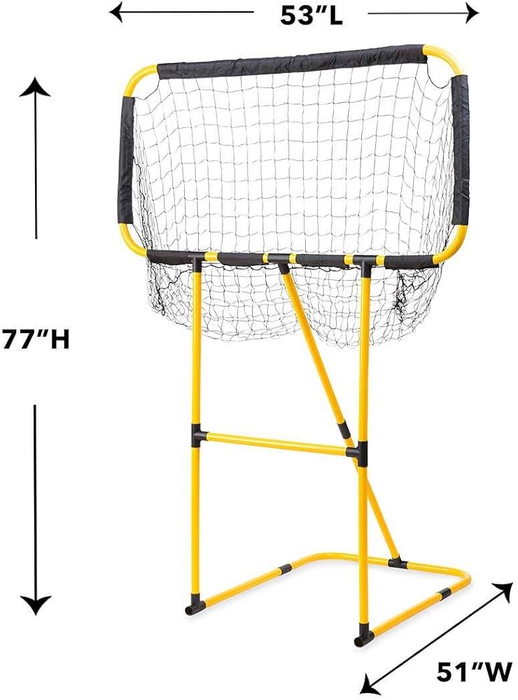 Lightweight plastic target practice set doubles as a disc net and a football field goal Assembled framework measures 53"L x 51"W x 77"H Includes an inflatable foam football, 2 flying discs (red and yellow), hand pump, 6 ground stakes, and 2 goal flags Lightweight portable play set means active play at home and away Great for solo play, or grab your friends for a backyard play date!