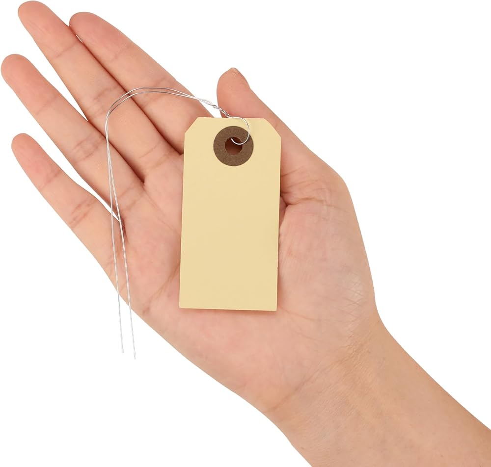 DURABLE 6-inch long WIRE - blank tags have 12” (6” folded) wire ties already attached. You can easily tie the paper tag to any item and be sure it stays put.