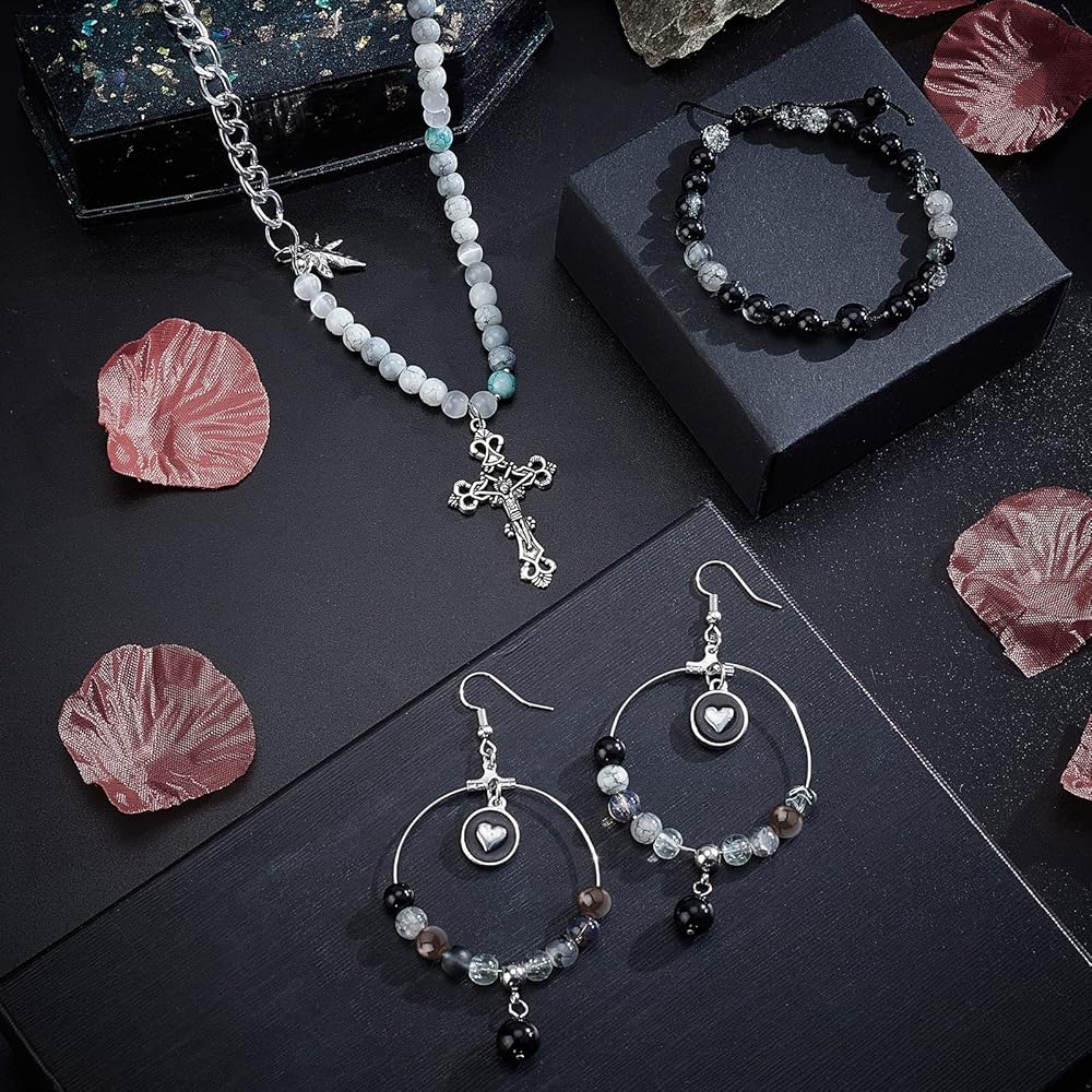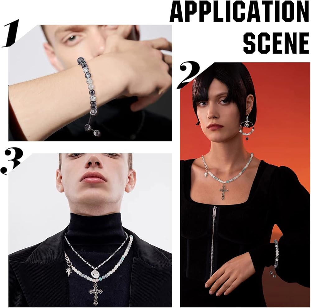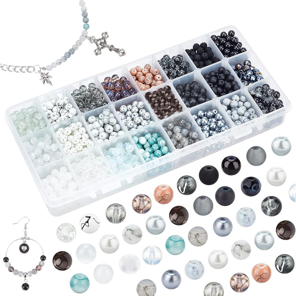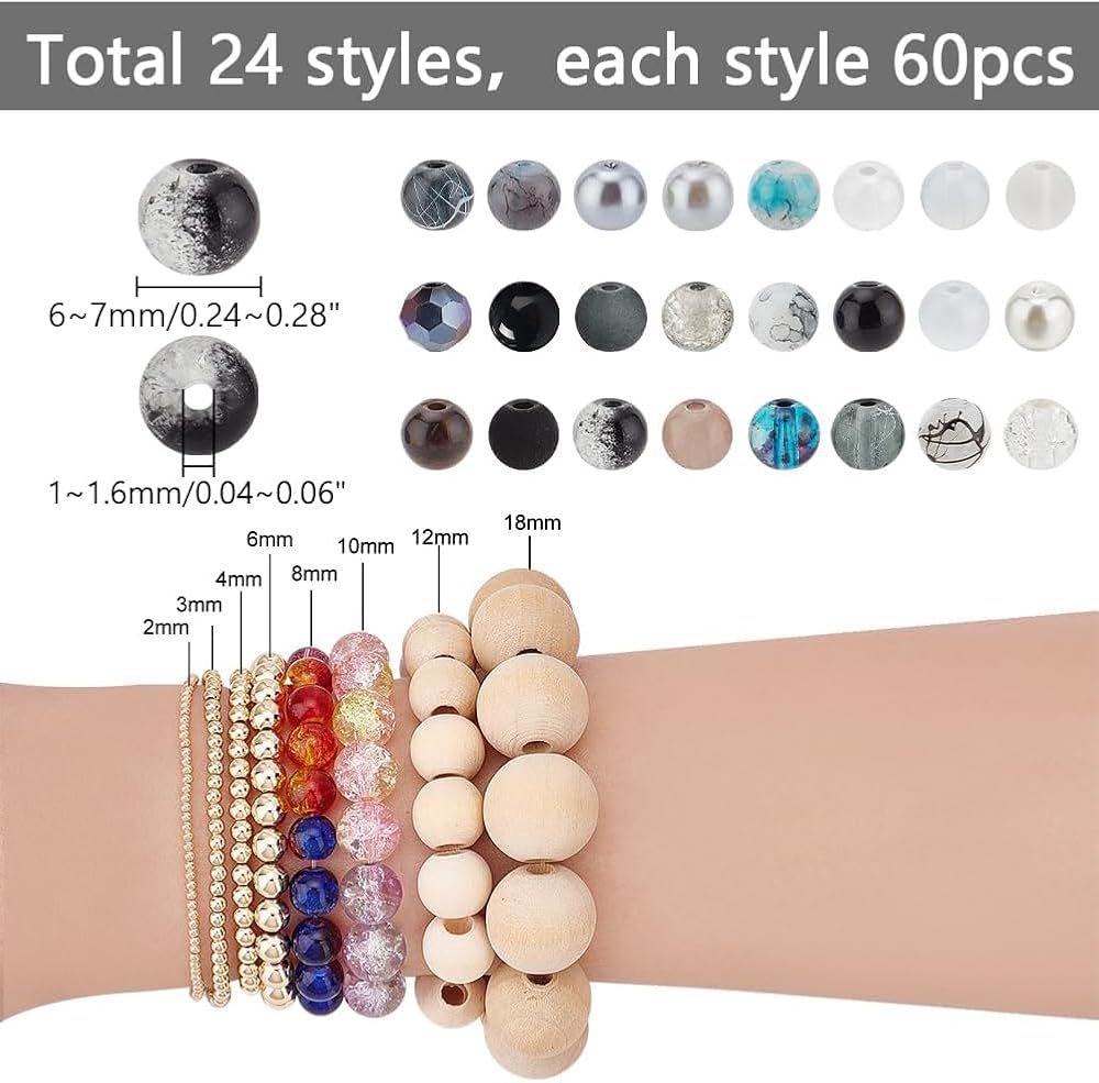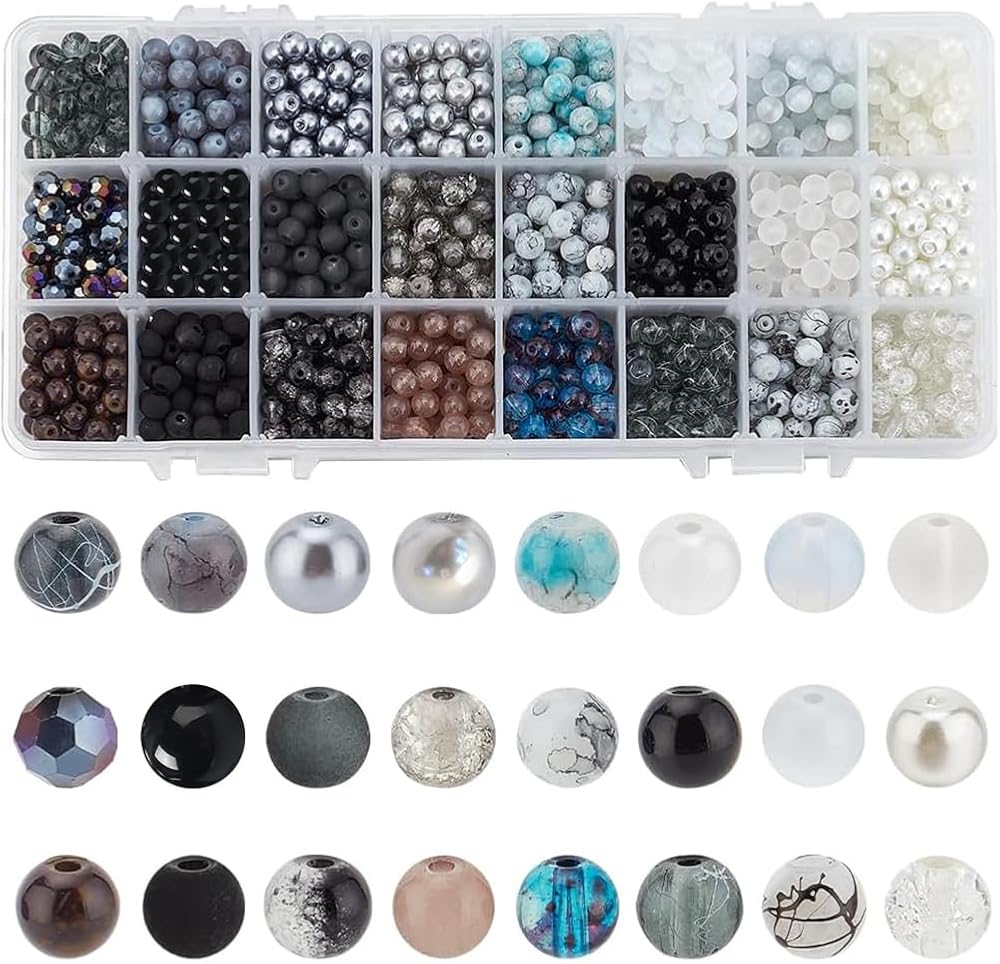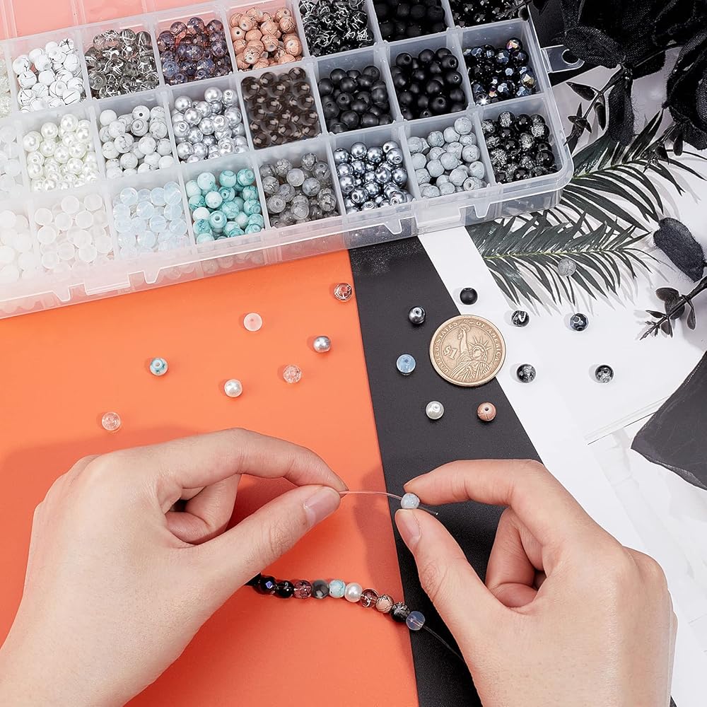 Package Includes: Come with 24 color 8mm glass beads 1mm elastic crystal thread cord in black and white, 1 pack stainless steel scissors, stainless steel big eye beading needles. Perfect craft kit for you to DIY a glass beads necklace and bracelet.