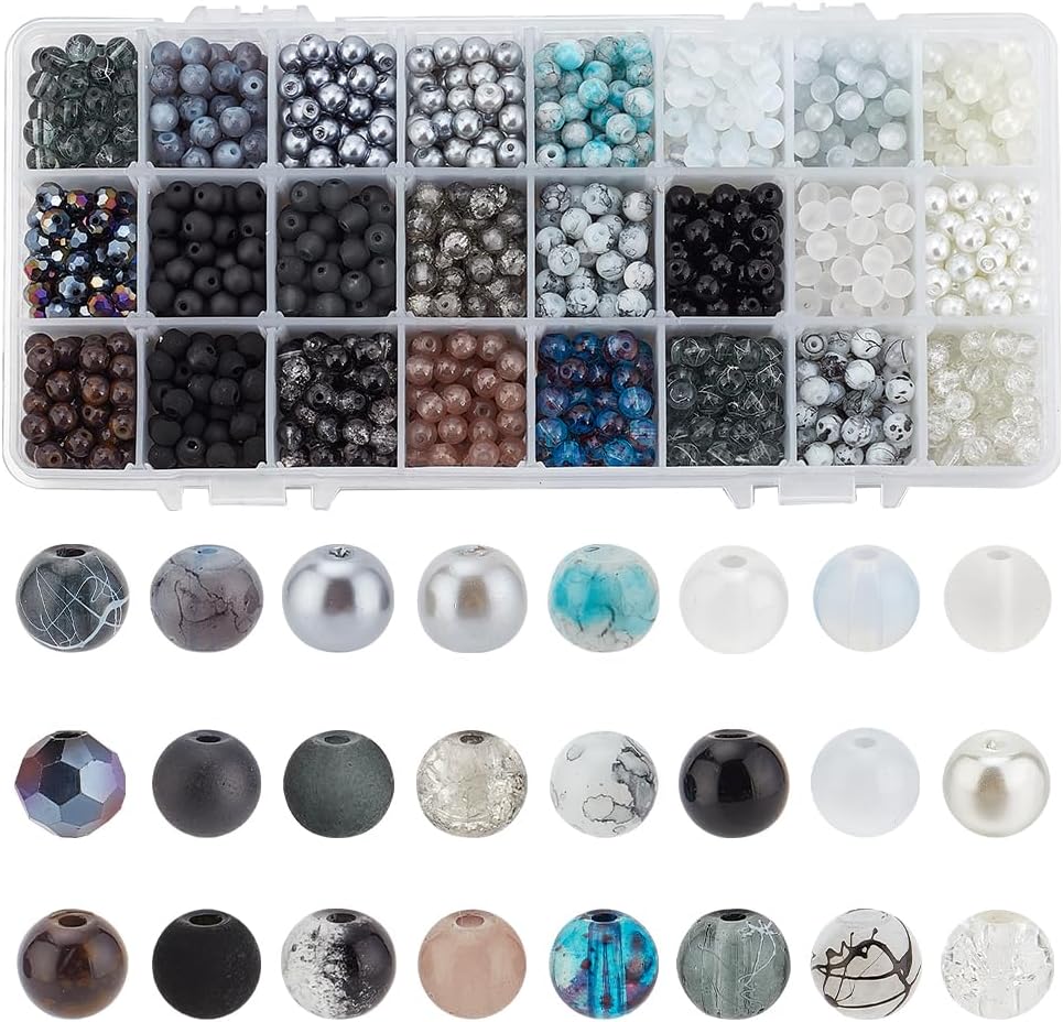 24 Color Glass Beads: There are 5 style glass beads - transparent frosted glass beads, spray painted crackle glass beads, baking painted glass beads, drawbench glass beads, imitation jade glass beads. All the beads are in amazing bling bling colors, vibrant colors will be excellent sources of your craft inspiration.