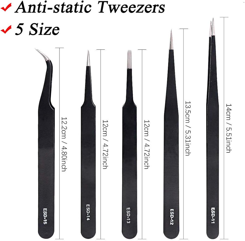 ❃ Tweezers: 5 style, Anti-static, not easy to get rusty, can hold small parts, the tip is pointed.