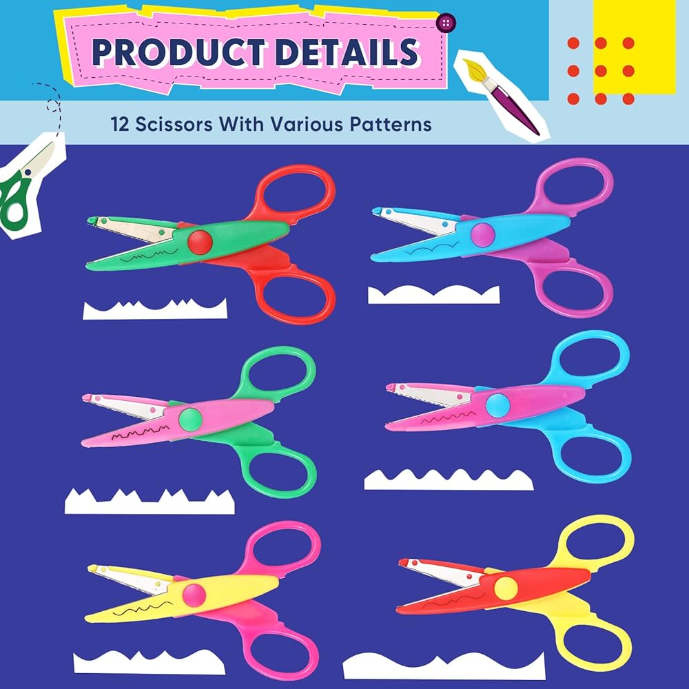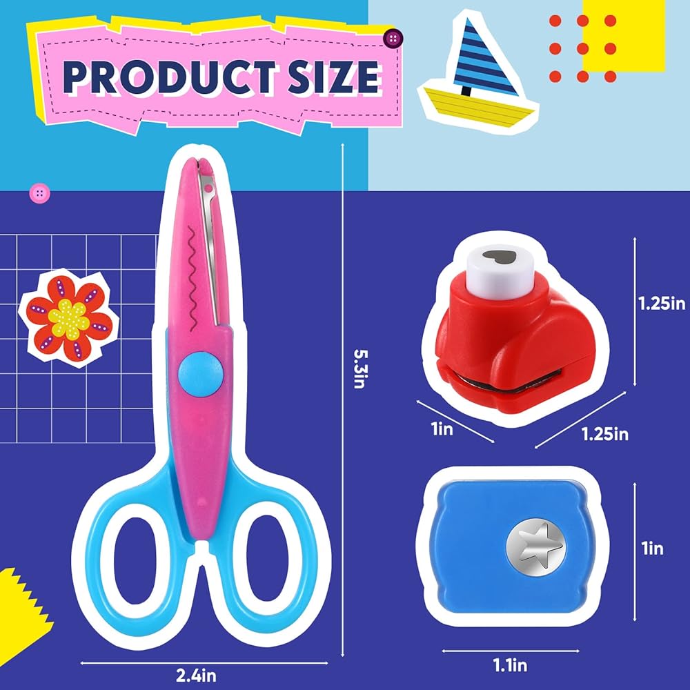 Thoughtful and Safe Design: the blades of the decorative scissors are wrapped in a plastic case, to avoid children from scratching their hands when using them; The hole punch does not require a lot of strength to produce the pattern you want, which is suitable for children or beginners