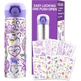 🎀【LEAK-PROOF FUNCTION AND UPGRADED DESIGN 】🦄Crafts for girls ages 4-8 are adopted for upgrade design which has a rubber ring tucked on the lid to prevent the water from leaking. The cap is also carefully designed with a purple button, which will open when you press the bottle mouth gently. The most important thing is that the size of the bottle mouth is in line with the mouth size of a 4 5 6 7 8 9 10 11 12-year-old girl. (Note: The bottle is recommended to be washed by hand.)