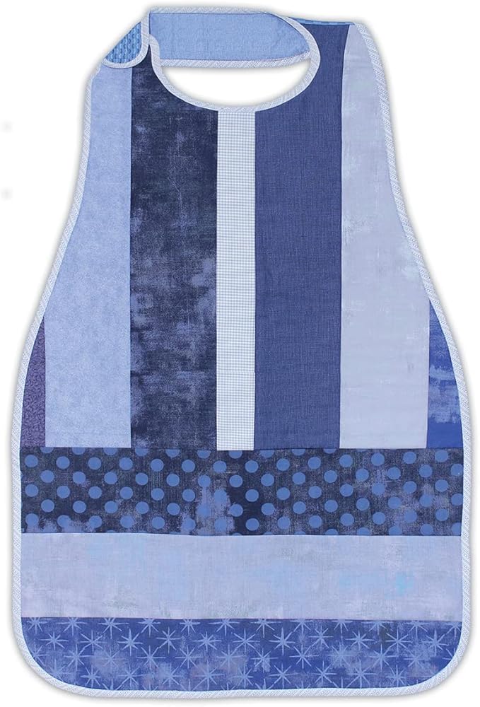 Cover up in style. Create a travel apron/bib using the printed batting pattern and your own fabric. Sew by number for an easy sewing project. Use it as a travel bib, a project apron or a general cover up for messy projects.
