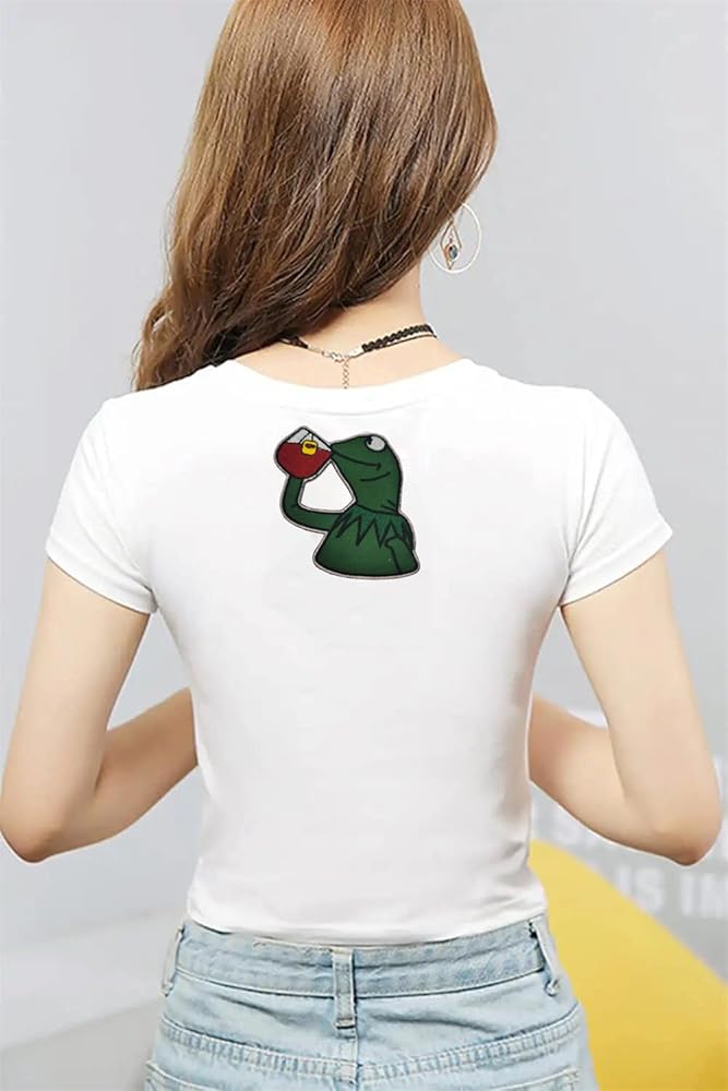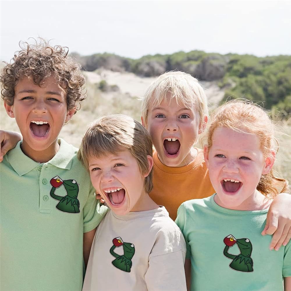Kermit None My Business Frog Sipping Tea Patches Embroidery Sew On/Iron On Patches for Dress Jeans Jackets Frog Applique Stripe Badge DIY Accessory