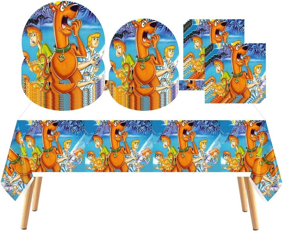 41 pcs Cartoon Scooby cute dog Doo Themed Party Supplies, 20 Plates, 20 Napkins and 1 Tablecloth, princesses Birthday Party Decorations for Boys and Girls