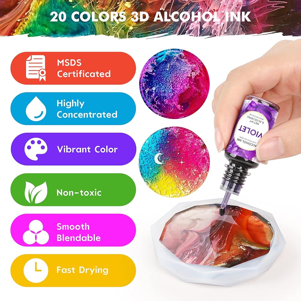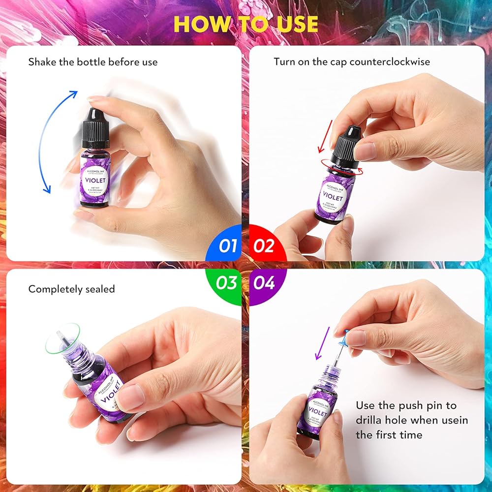 🌟【ACID-FREE & FAST DRY & FADE RESISTANT & HIGHLY CONCENTRATED & SMOOTH BLENDABLE】: Wayin new alcohol inks set features fast-drying,fade-resistant, water-resistant and acid-free. High concentrated metallic alcohol ink to ensure great depth and vibrance, a little can go a long way, It can be used on their own or blend with the regular alcohol ink together for infinite color-rich effects, great artwork DIY kit for both beginners and professionals. NOTE: Shake the bottle before use.