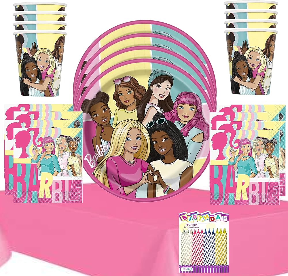 Complete Party Kit: Our Barbie Plates Napkins Cups Table Cover come with everything you need to throw a fun and memorable birthday party, including a birthday Candles from LLILYKAI VALUE BUNDLES