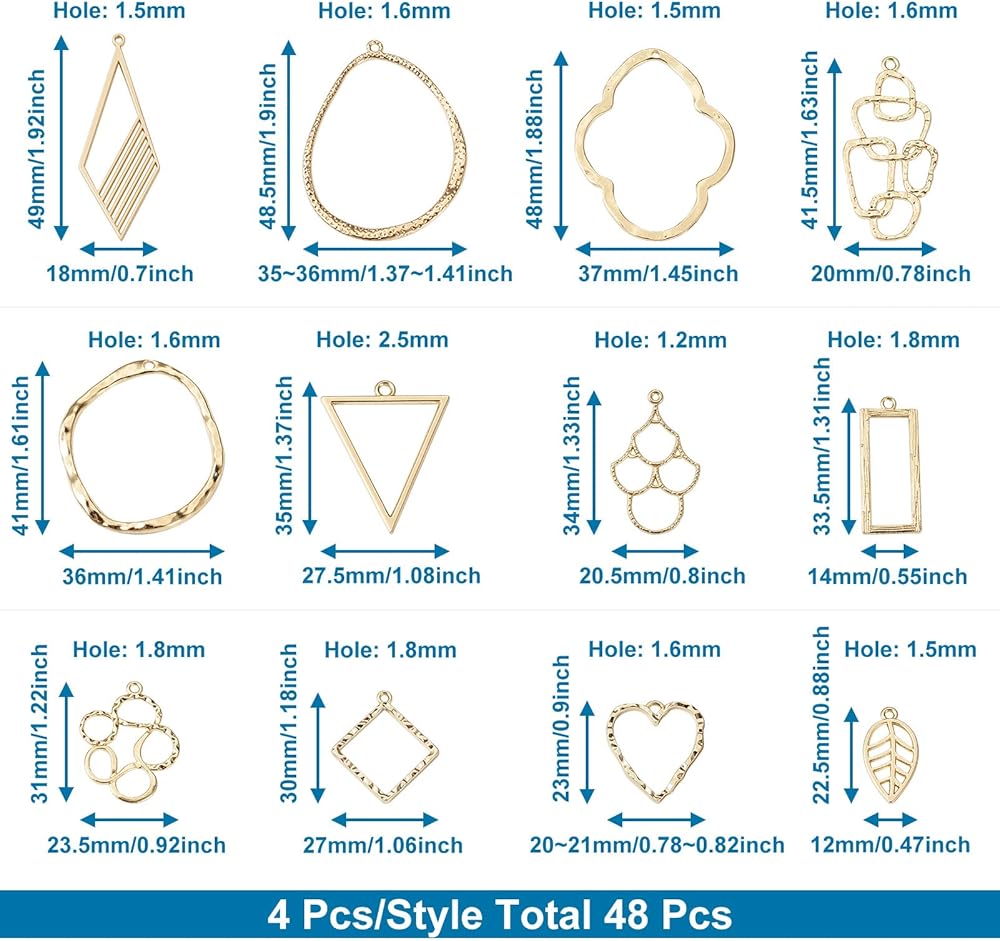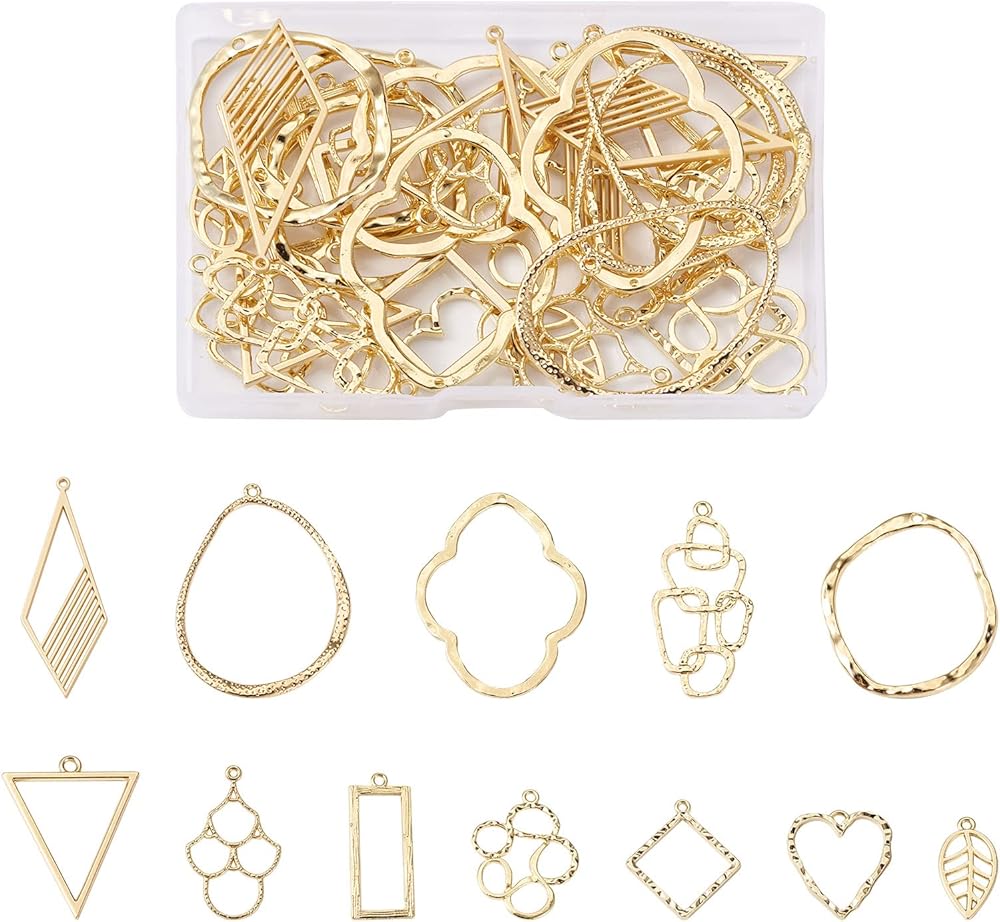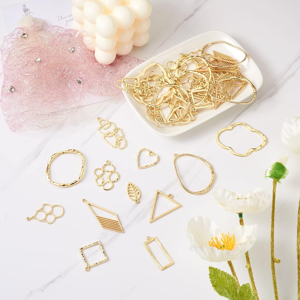 Design: The hollow frames have a classic golden finish, great to add a shine and make your jewelry designs and crafts exquisite and eye-catching.