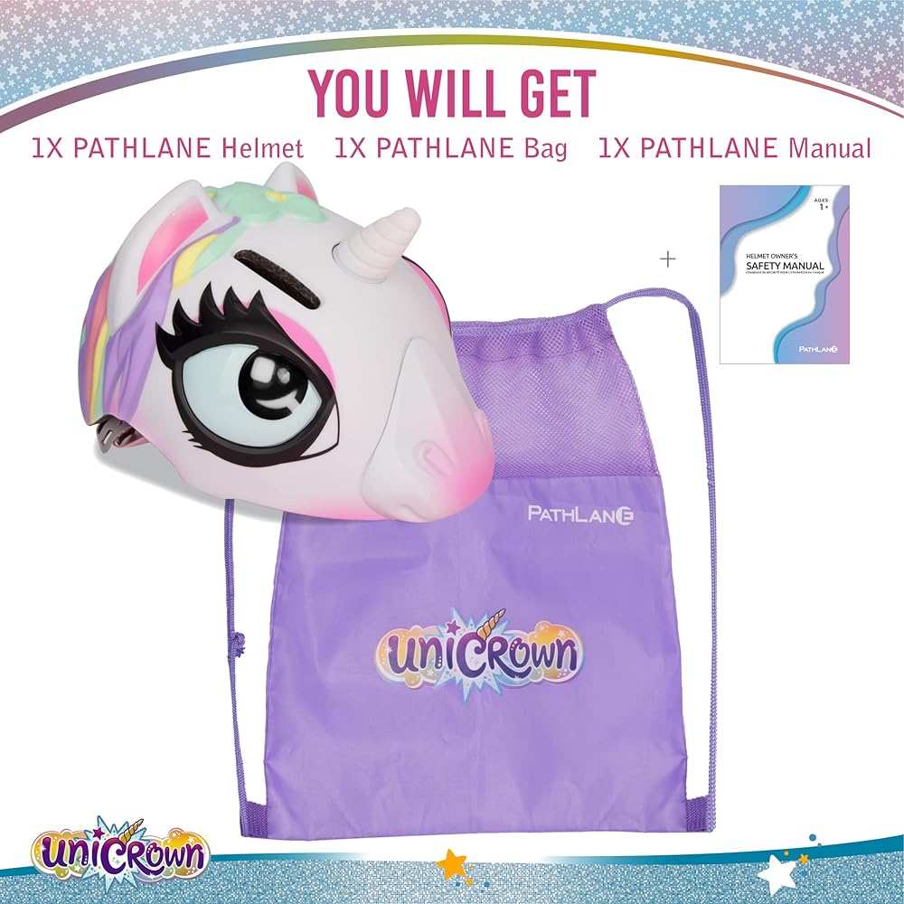 PATHALNE helmet is the best choice for your kids. The unicorn helmet has a cute shape, uses a