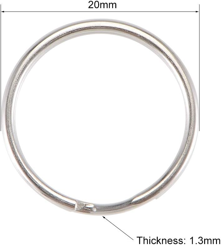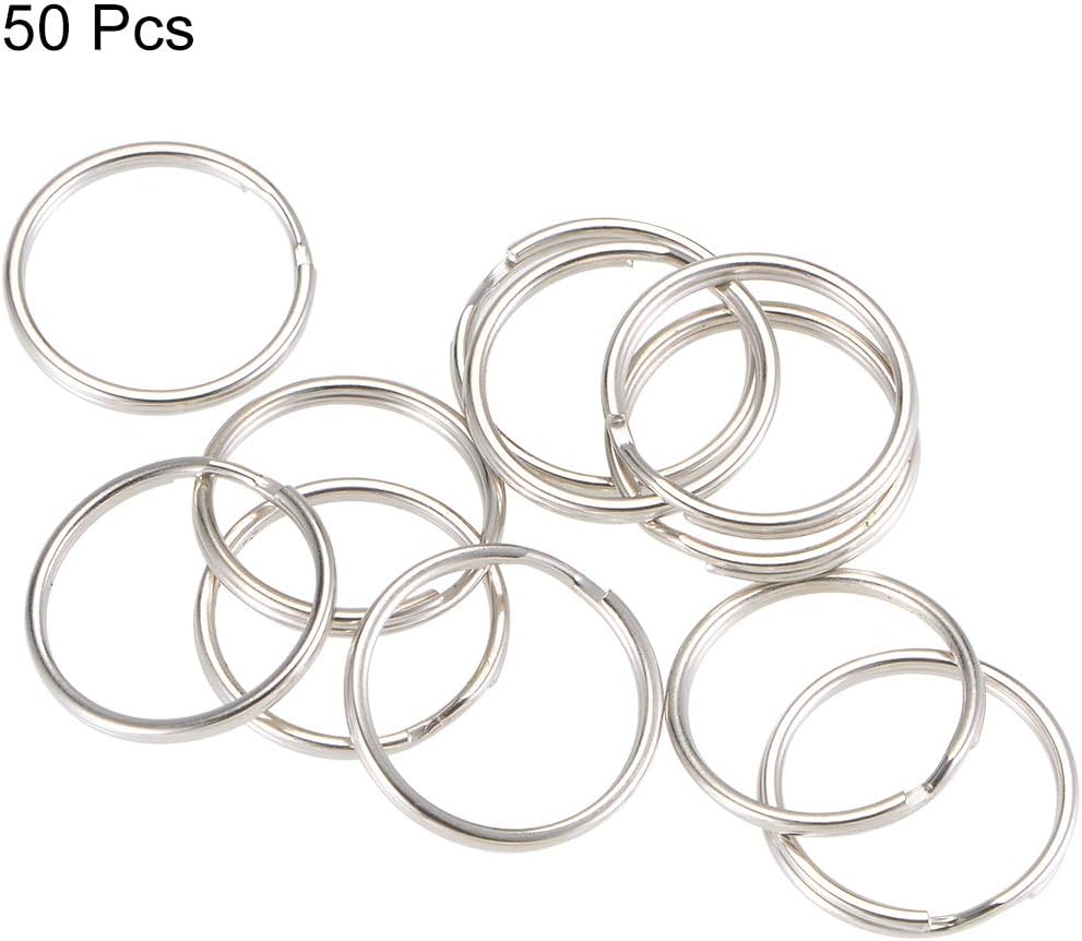 uxcell Split Key Ring 20mm Open Jump Connector for Lanyard Zipper Handbag, Nickel Plated Iron, Pack of 50