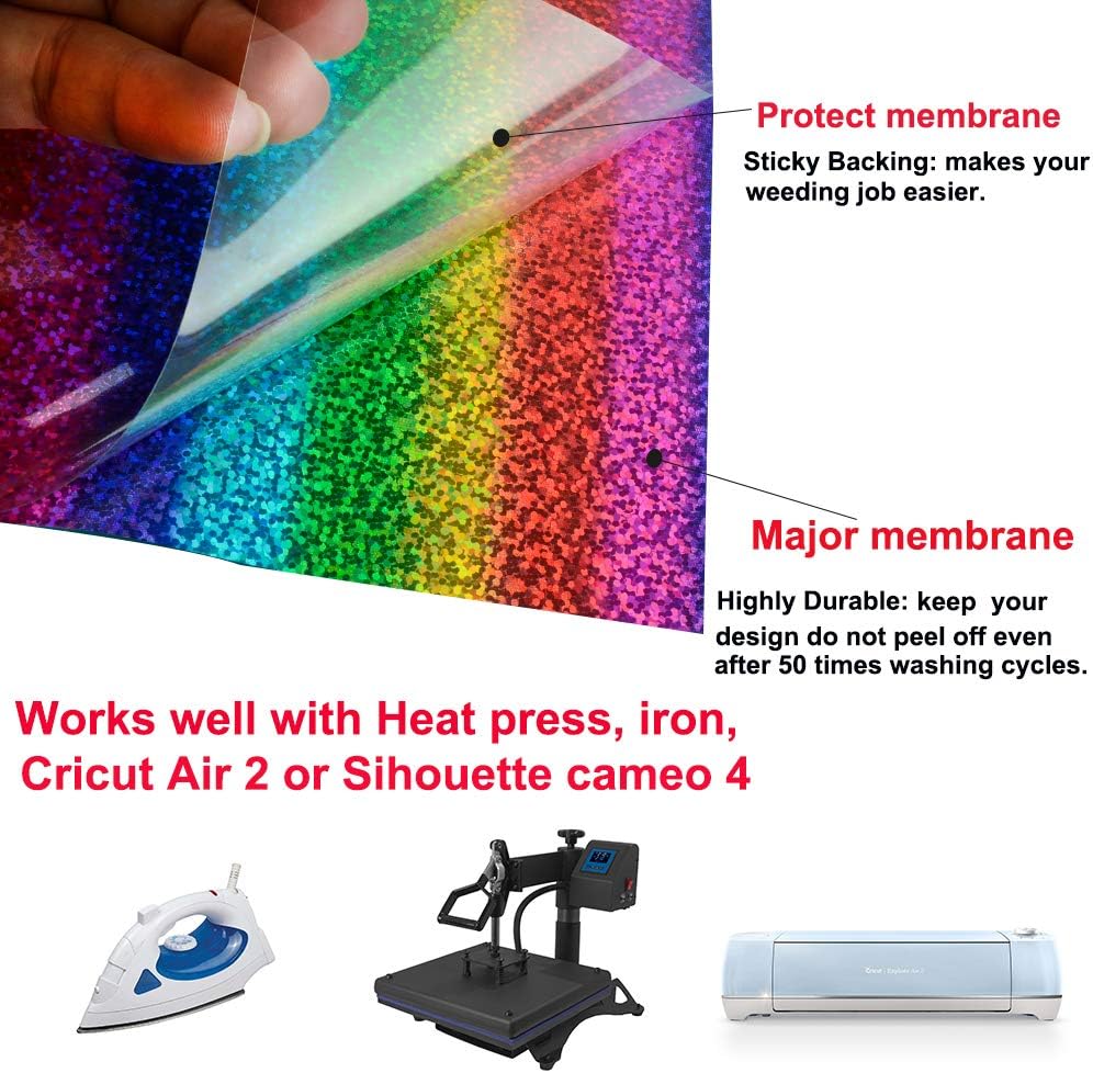 KISSWILL Holographic/glitter Heat Transfer Vinyl is made of Eco-Friendly elastic PU, designed for custom garment decoration ready-to-cut material.