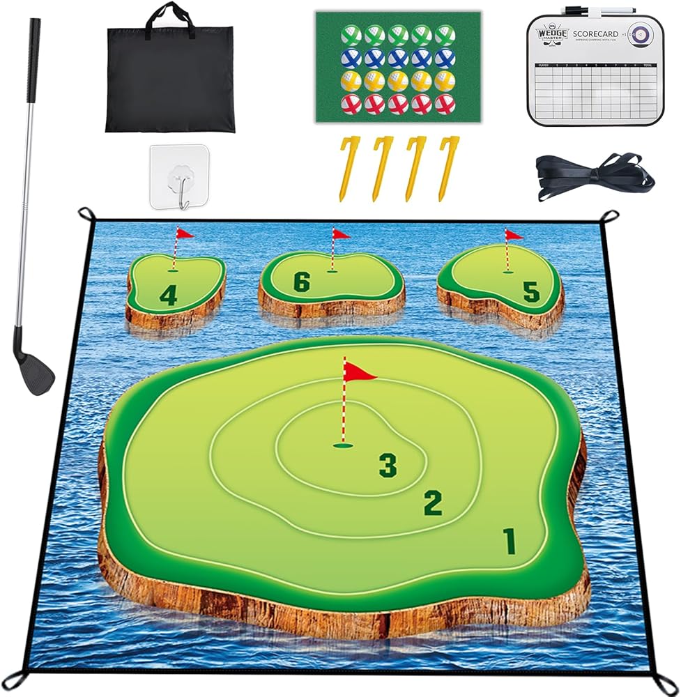 Golf Chipping Game Mat, Casual Golf Game Set with 20 Golf Balls, Over 6 FT Golf Hitting Game Mat, Mini Golf Practice Mat for Adults Kids Family Outdoor Indoor Backyard Play