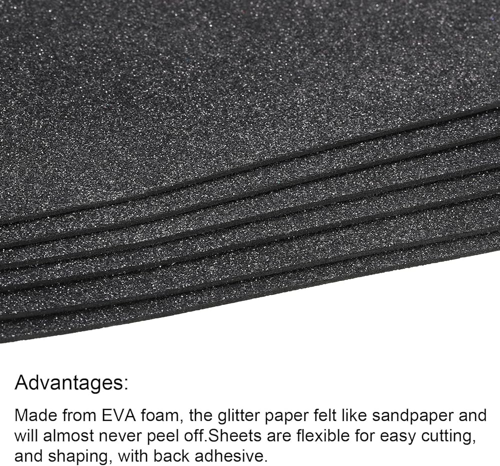 PATIKIL Glitter EVA Foam Sheets Soft Paper Non-Adhesive 11.8 x 7.8 Inch Black for DIY Projects Pack of 10