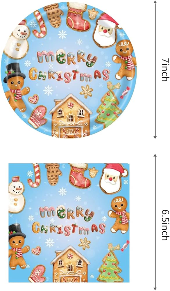 4.Unique design: Many gingerbread christmas elements on the plates and napkin, santa reindeer snowman red candy cane etc. The set are color and cute, can make your party more interesting and more attractive.
