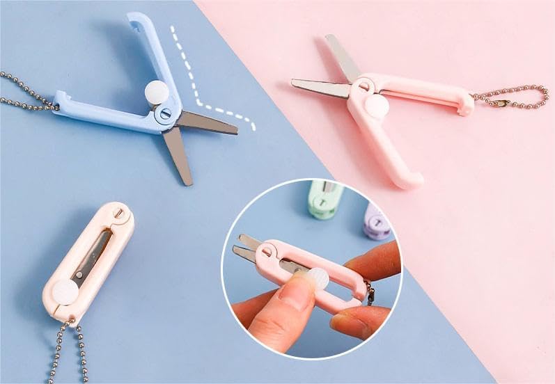 Folding Scissors Pocket Mini Scissor with Keychain for Cutting Portable Travel Scissors Foldable Telescopic Cutter, Scrapbooking, Crafting, Sewing
