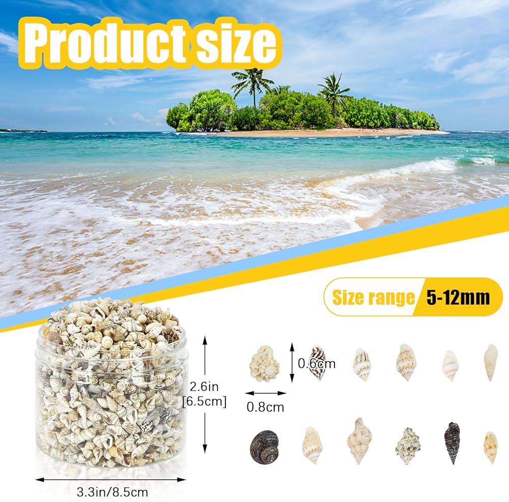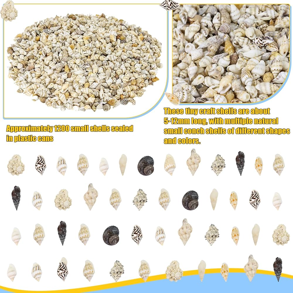 Tiny Seashells Bulk: The package includes approximately 1200 miniature sea shells sealed in a plastic jar. Make sure these miniature decorative shells arrive to you as complete as possible.