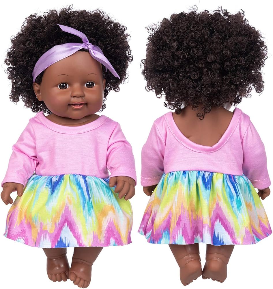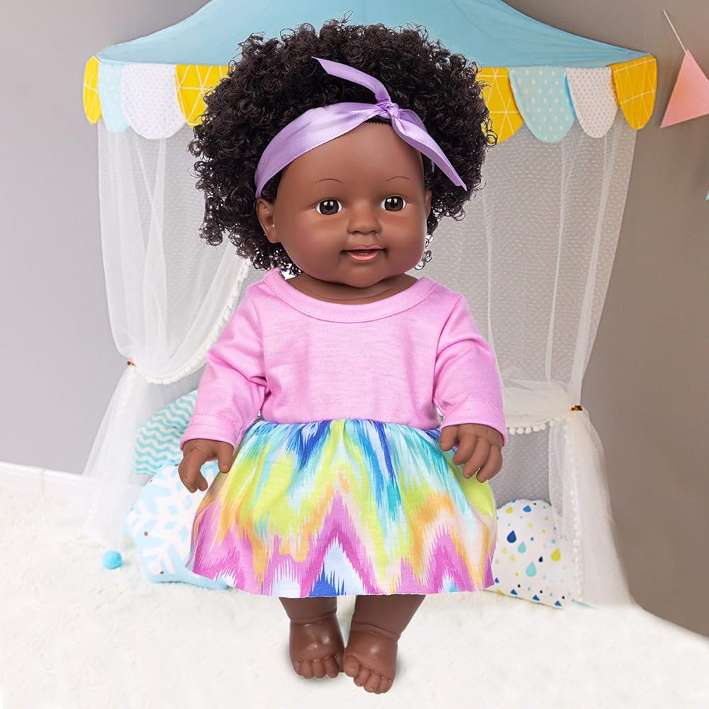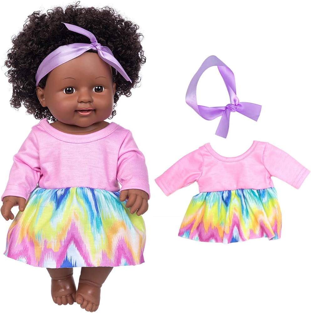 Perfect size: The package includes a 11.8-inch black girl doll with a cute rainbow dress and pink headband. Ideal size for children aged 3-12.