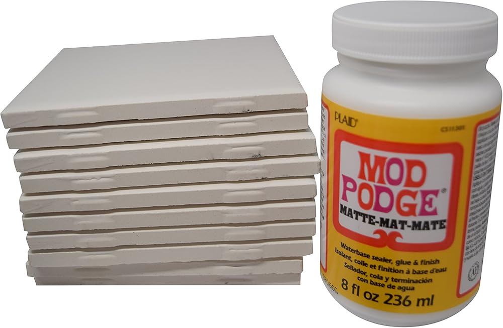 These gorgeous glossy tiles make a great background for small painting projects, or other tile craft projects. Get them and paint a nice scene or glue some pretty pieces to it. Get an 8 oz of Mod Podge Matte Finish waterbase sealer, 25 .7in brown felt pads, 36 .5in brown felt pads to attach to your coaster to protect the surface of the furniture, and a 4 pack of Crafter's Choice Foam Brushes to apply the products to your tile. It's all you need except for the pictures or other memorabilia you need to create great gifts and presents. Each package contains 10 tiles, if you need more than that, please order additional packages.