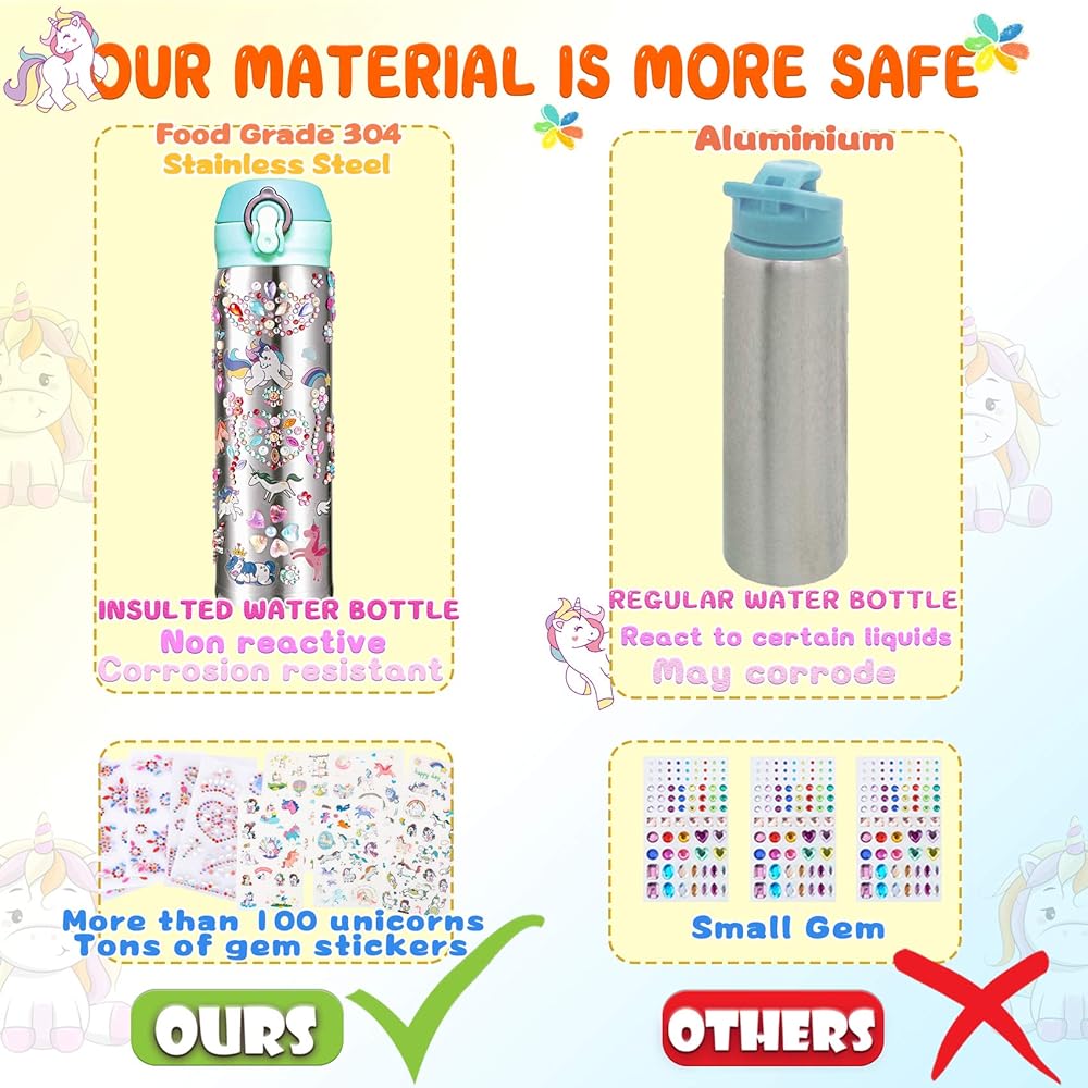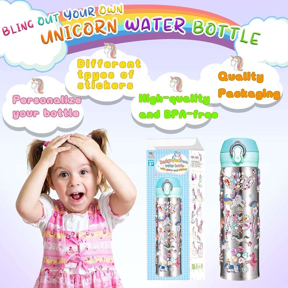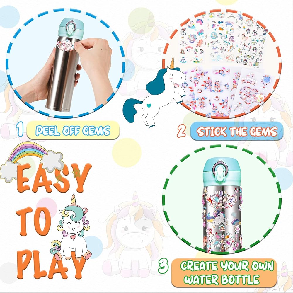 【DECORATE WATER BOTTLE】Foster Creativity with our water bottle craft kit, simply peel the gems from the sticker, apply them to make a unique water bottle, easy & fun for kids at a young age as well