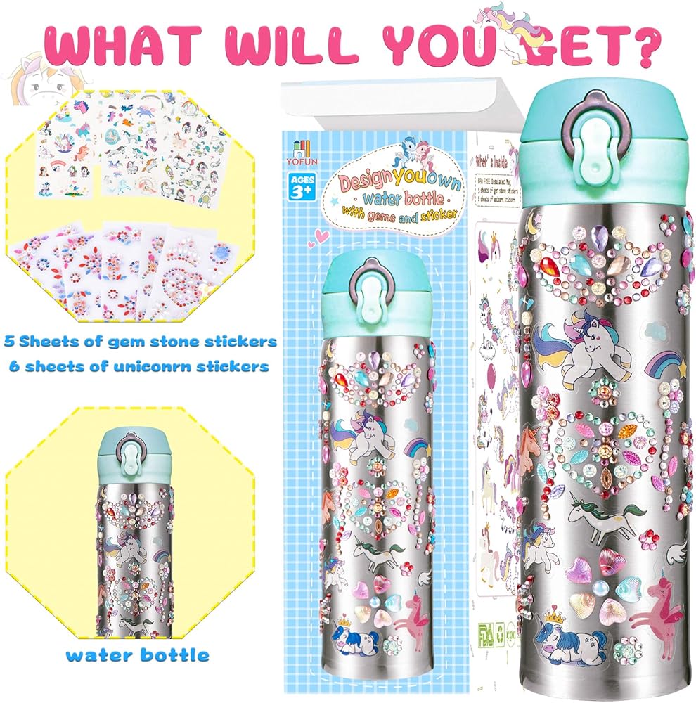 Y YOFUN Create Your Water Bottle with Tons of Rhinestone Gem Stickers - Craft Kit & DIY Art Set for Children, Gift for Girls - 17 OZ BPA Free Stainless Steel Vacuum Insulated Mug (Gemstone & Unicorn)