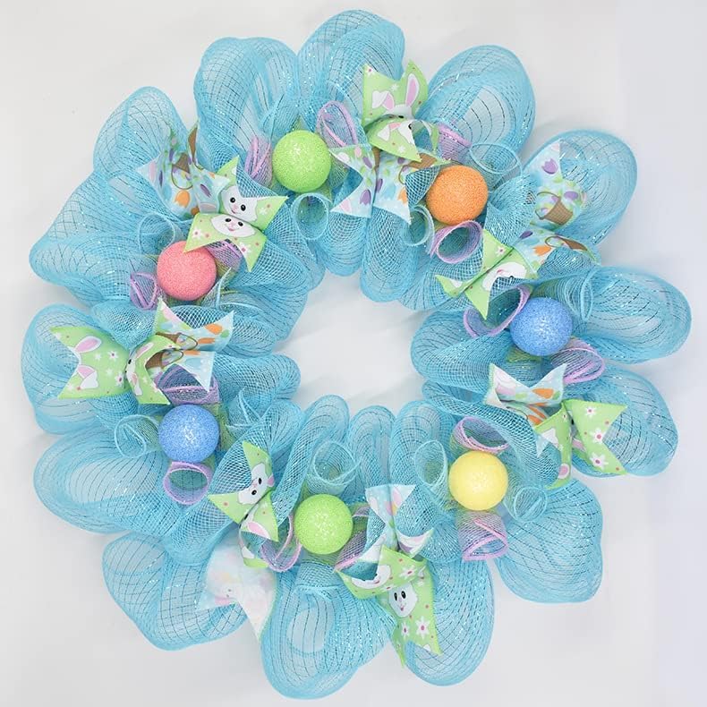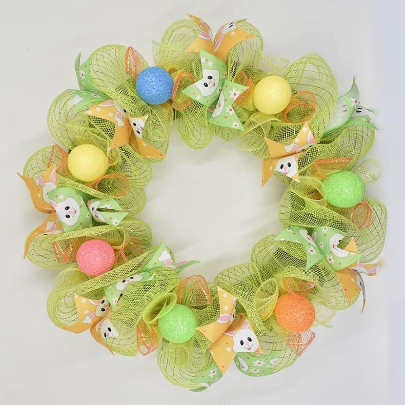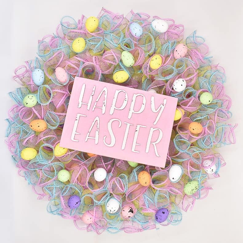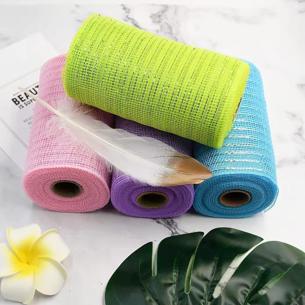 Easter Day Mesh Ribbon Deco,Pink Purple Blue Green Deco Mesh Wire Ribbon Metallic Foil Rolls for DIY Easter Decorations Wrapping Craft, 4 Rolls(6 inch Wide)