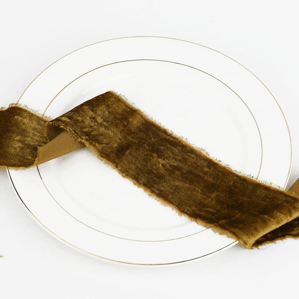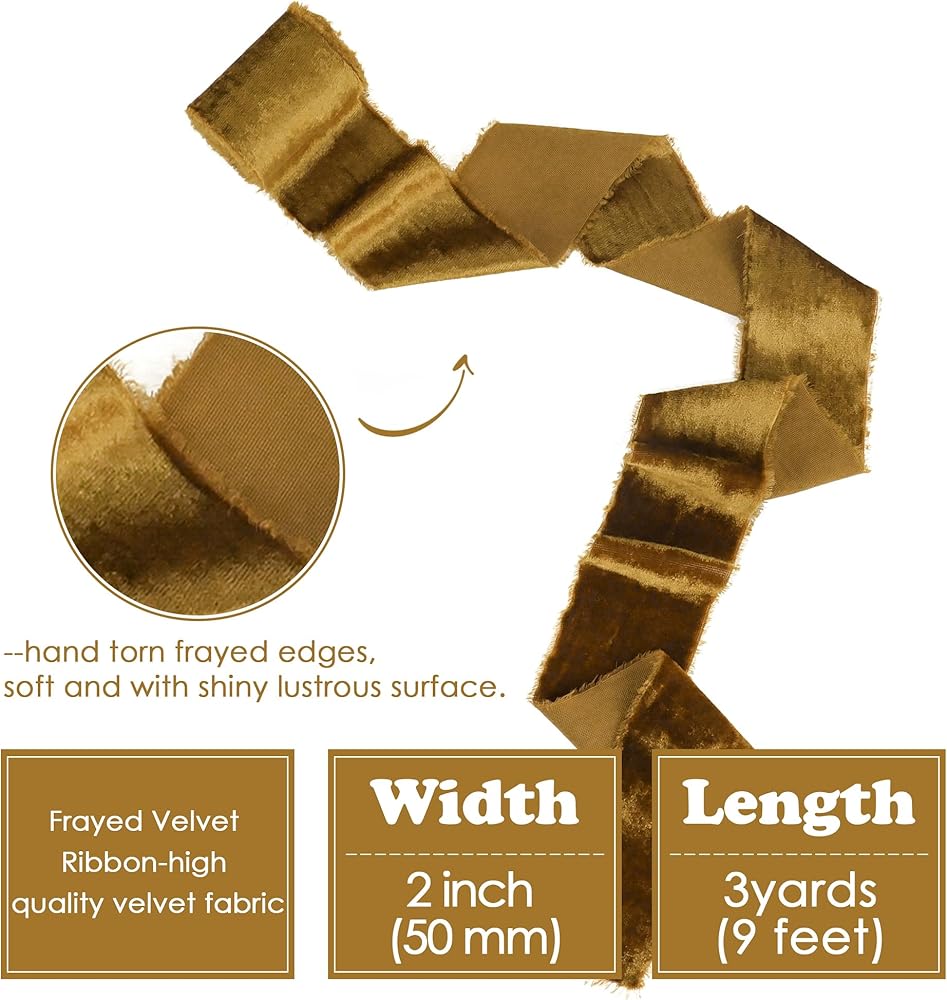 🎀 FRAYED VELVET RIBBON APPLICATION - this ribbon is a beautiful addition for wedding and bridal shower decor, farm style, country, boho and cottage, chic etc. Perfect for gift packaging, bridal gift wrap, invitations, chair decor, cake decorating, hair bows, bows, floral bouquet, trimming, gift basket, wrapping paper, DIY craft supplies, scrap-booking, hat decor, clothing trademark and accessories, staircase garland decor, bridal favors, Christmas tree, home decor and more.