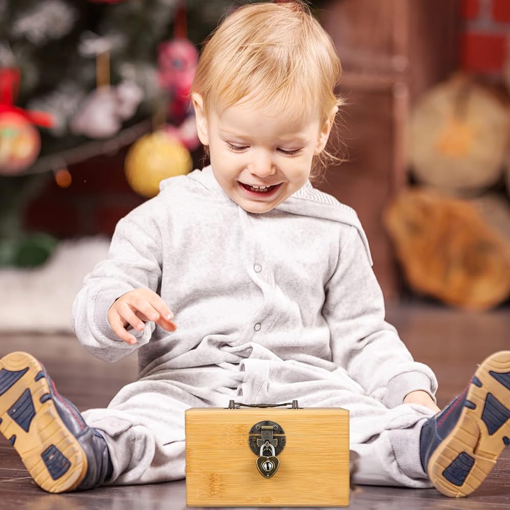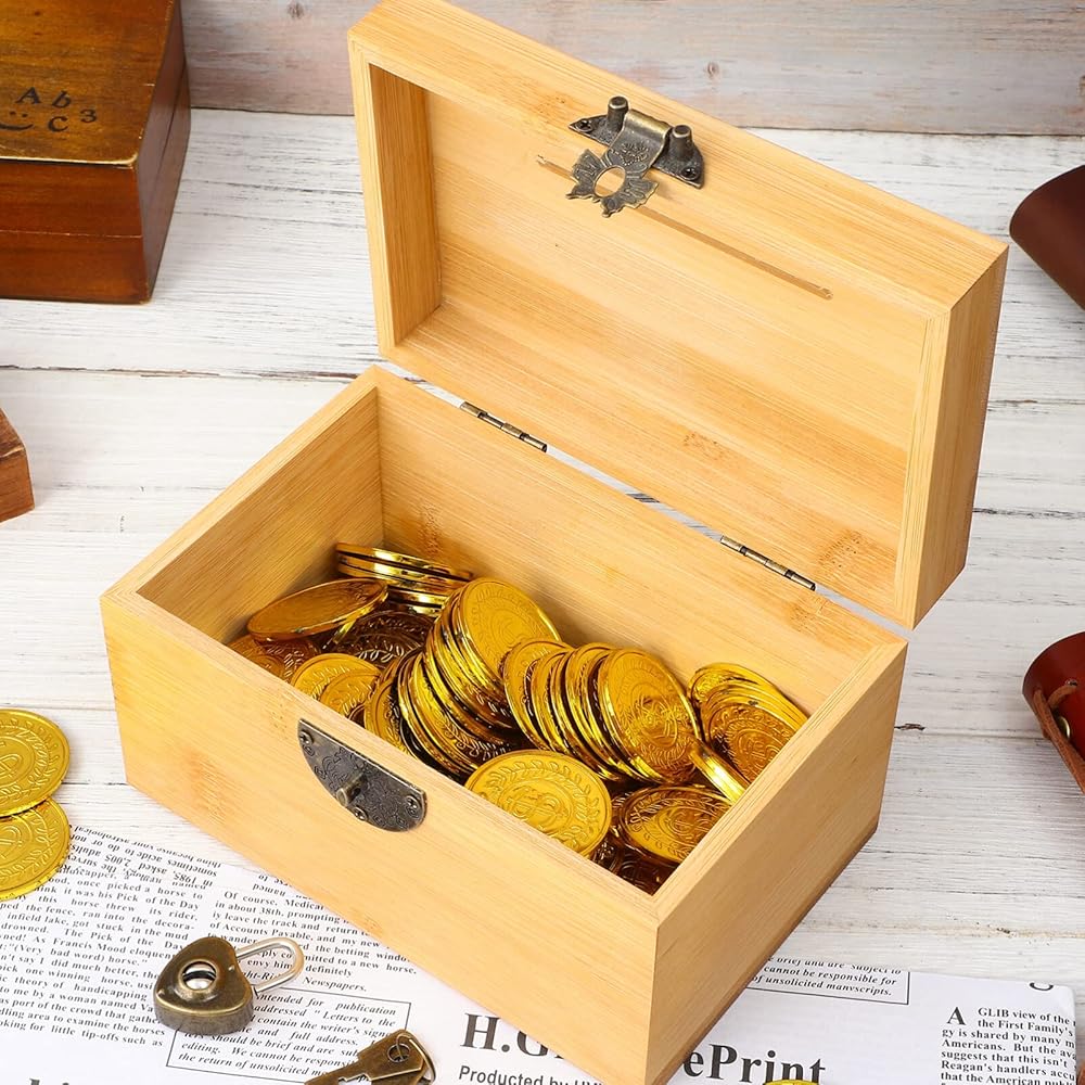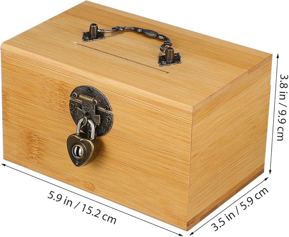 Garneck Vintage Treasure Storage Box, Saving Box Holder Case with Lock, Treasure Chest Vintage Decorative Wooden Piggy Bank Organizer Saving Case with Lock for Home